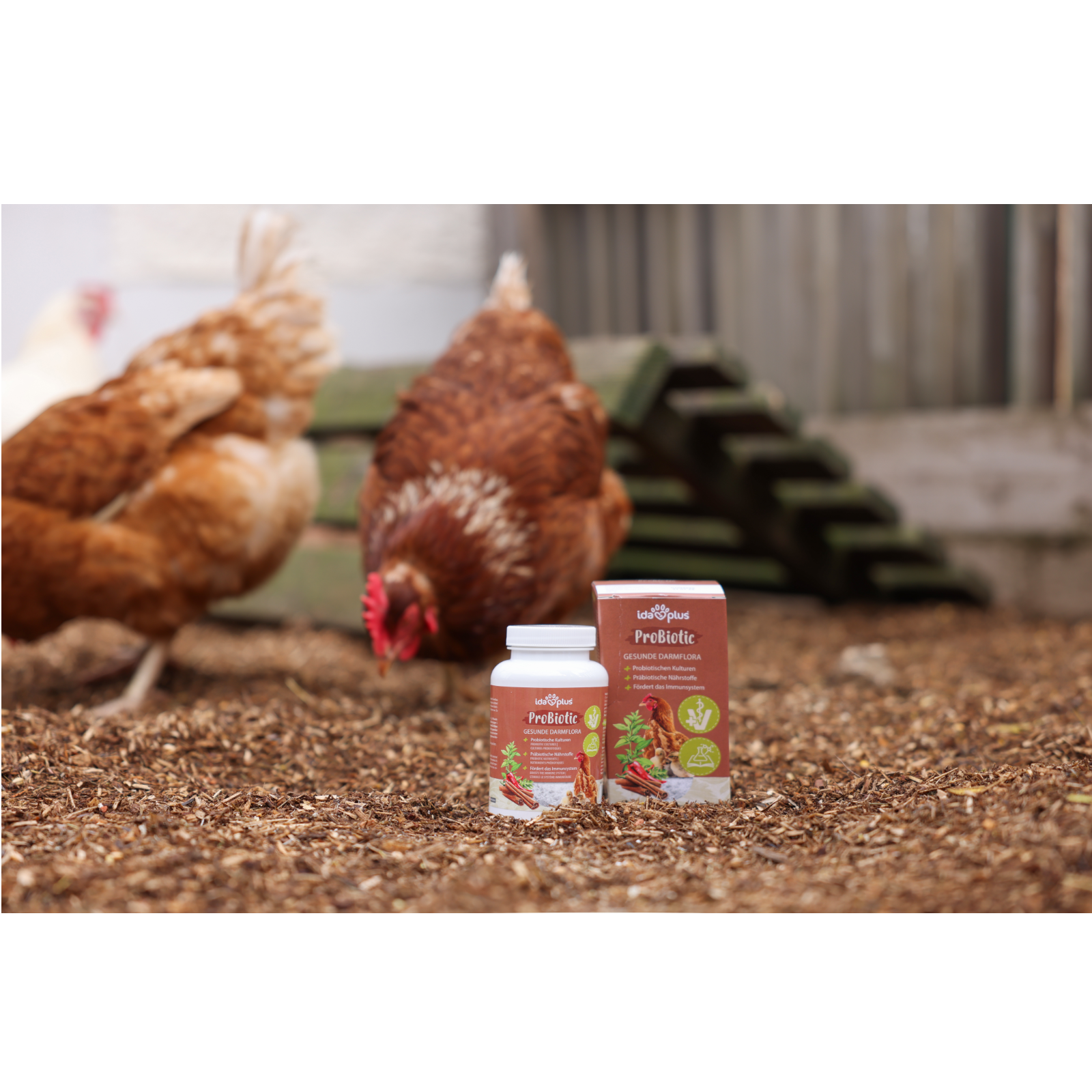 ProBiotic ist optimal auf die Bedürfnisse einer gesunden Darmflora von Hühnern und anderem Geflügel abgestimmt. Der spezielle Darm-Plus-Komplex mit effektiven Prä- und Probiotika, funktionellen Pflanzenstoffen und essenziellen Vitaminen fördert nachhaltig eine natürlich gesunde Darmflora.