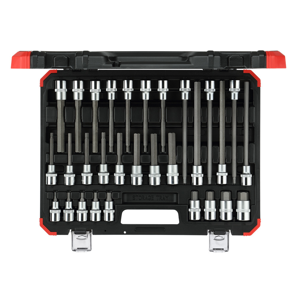 Schraubendrehereinsatz 1/2 Zoll, Innen-6-kant, metrisch, mit eingepresstem, phosphatierten Stift, mit griffiger Längsrändelung, Antriebsseite glänzend poliert, Ausführung nach DIN 7422