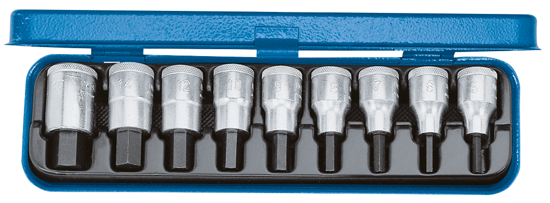Hochwertige Nusskassette für Innensechskantschrauben (Inbus) mit 1/2 Zoll Antrieb. Ideal für schwierige Anwendungen. Inhalt: Profi-Stecknüsse in den Gr. 5, 6, 7, 8, 9, 10, 12, 14, 17. Lieferung in stabiler Metallkassette.