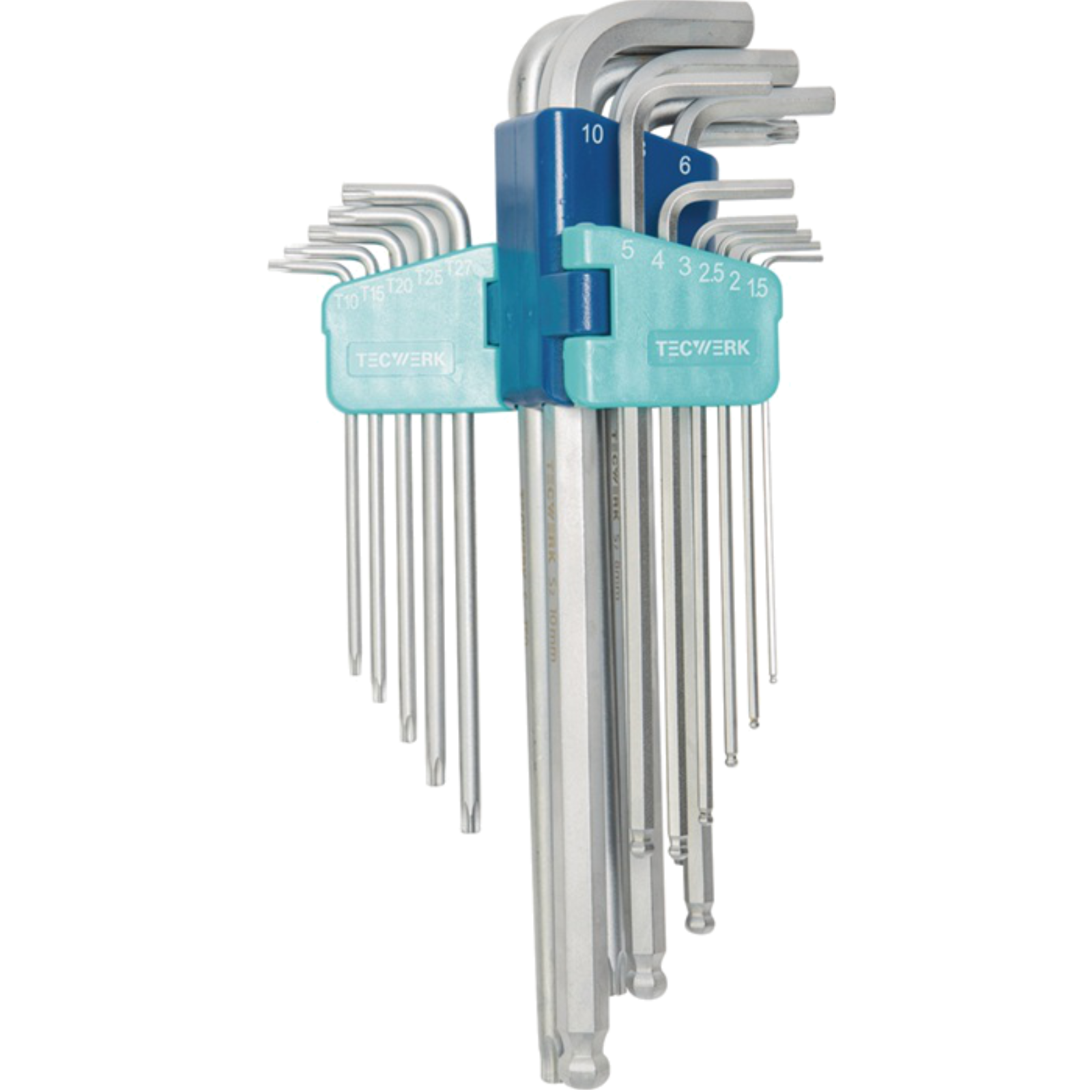 Inbusschlüssel-Satz für Schrauben mit Innen-TORX®-Profil · S2-Stahl · matt verchromt · abgewinkelt · Weitere technische Eigenschaften Bestückung: T9 - T45