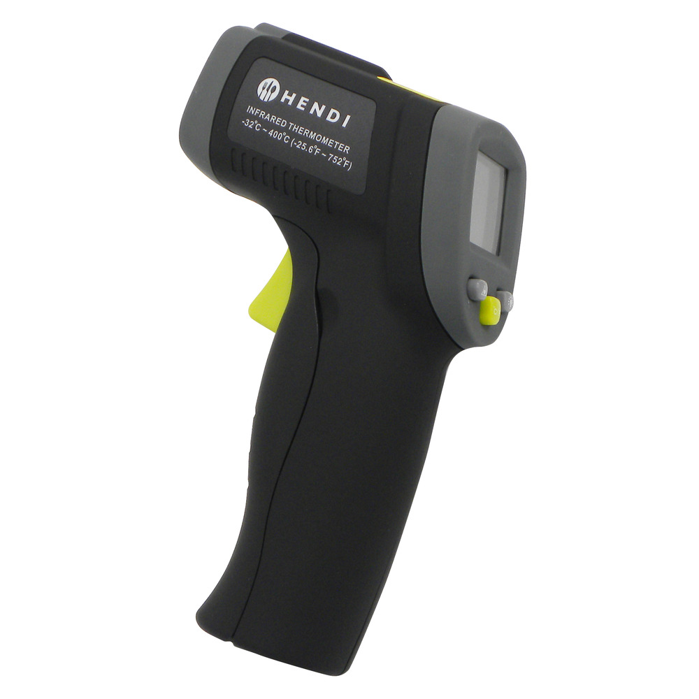 Z. B. für die Temperaturüberwachung von Speisen geeignet. Laserpointer für zielgenaues Messen. Messbereich -32°C bis +400°C. Die Haltefunktion hält gemessene Temperaturen auf dem Display. Graduierung 0,1°C, Genauigkeit ±1,5°C/±1,5%. Mit automatischer Abschaltfunktion. Inklusive Batterie