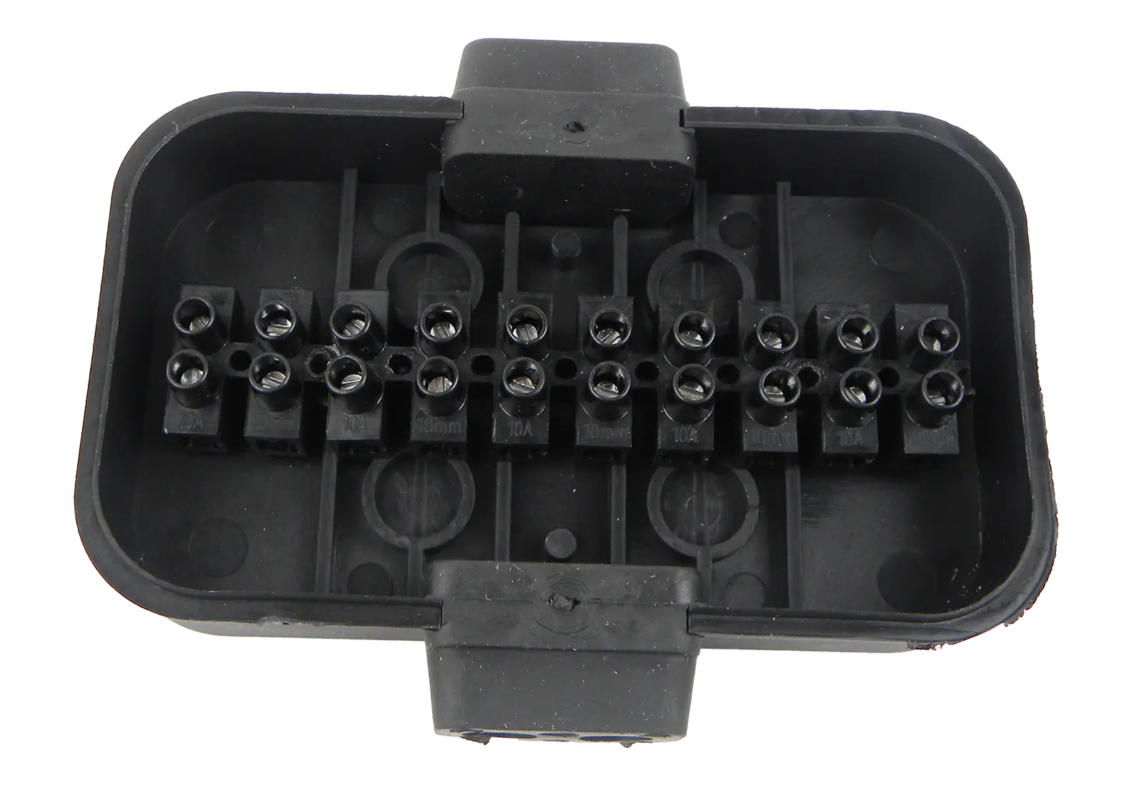 Verteilerdose für Anhängerverkabelung mit Schraubanschlüssen, aus Kunststoff, vermeidet Eindringen von Feuchtigkeit, Staub, 10-polig, LxBxH: 146x75x40mm.