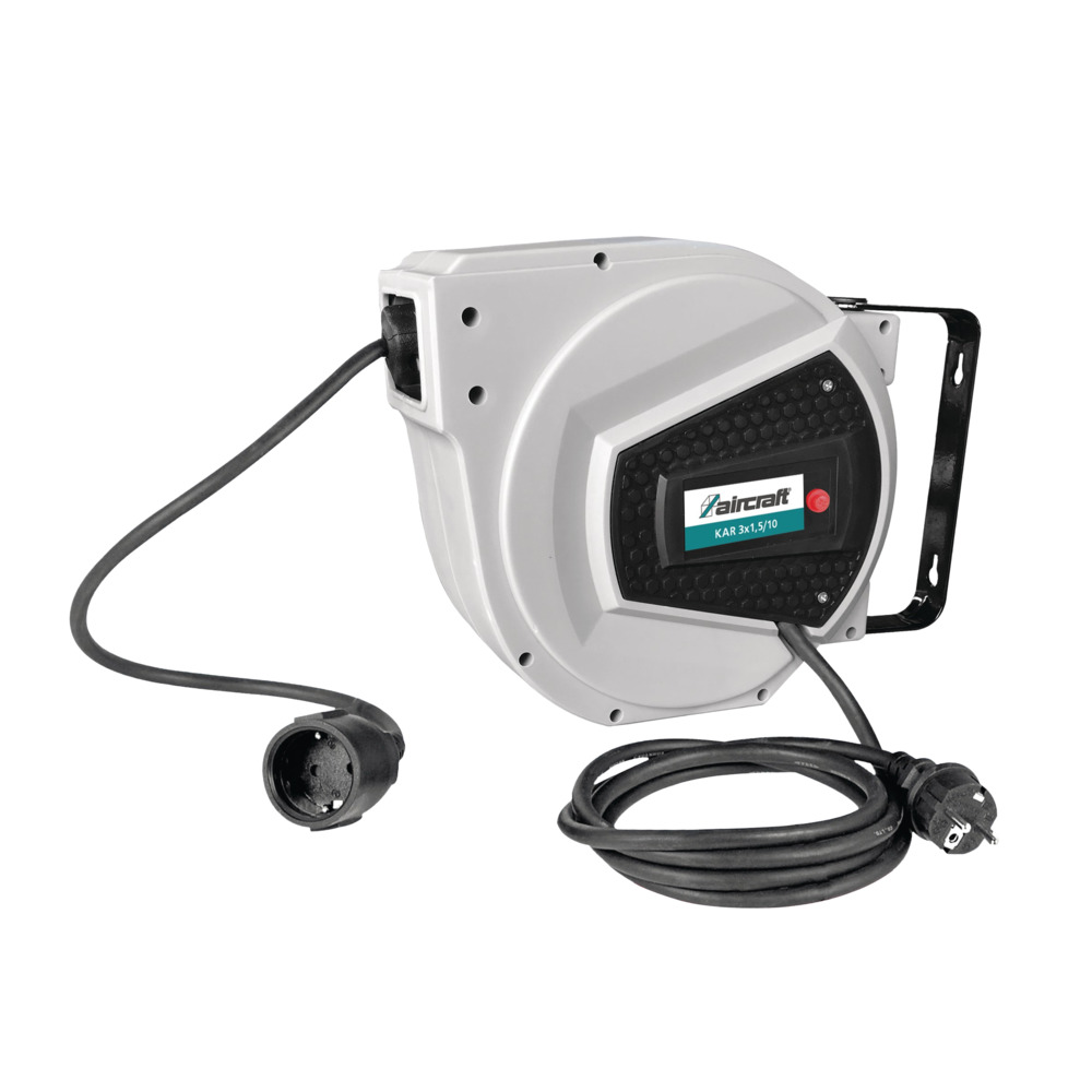 Schwenkbar über stabile Wand- bzw. Deckenaufhängung, durch einfaches Ziehen kann das Kabel arretiert oder nach Wunsch automatisch aufgerollt werden. Serienmäßig mit thermischer Überlastsicherung.