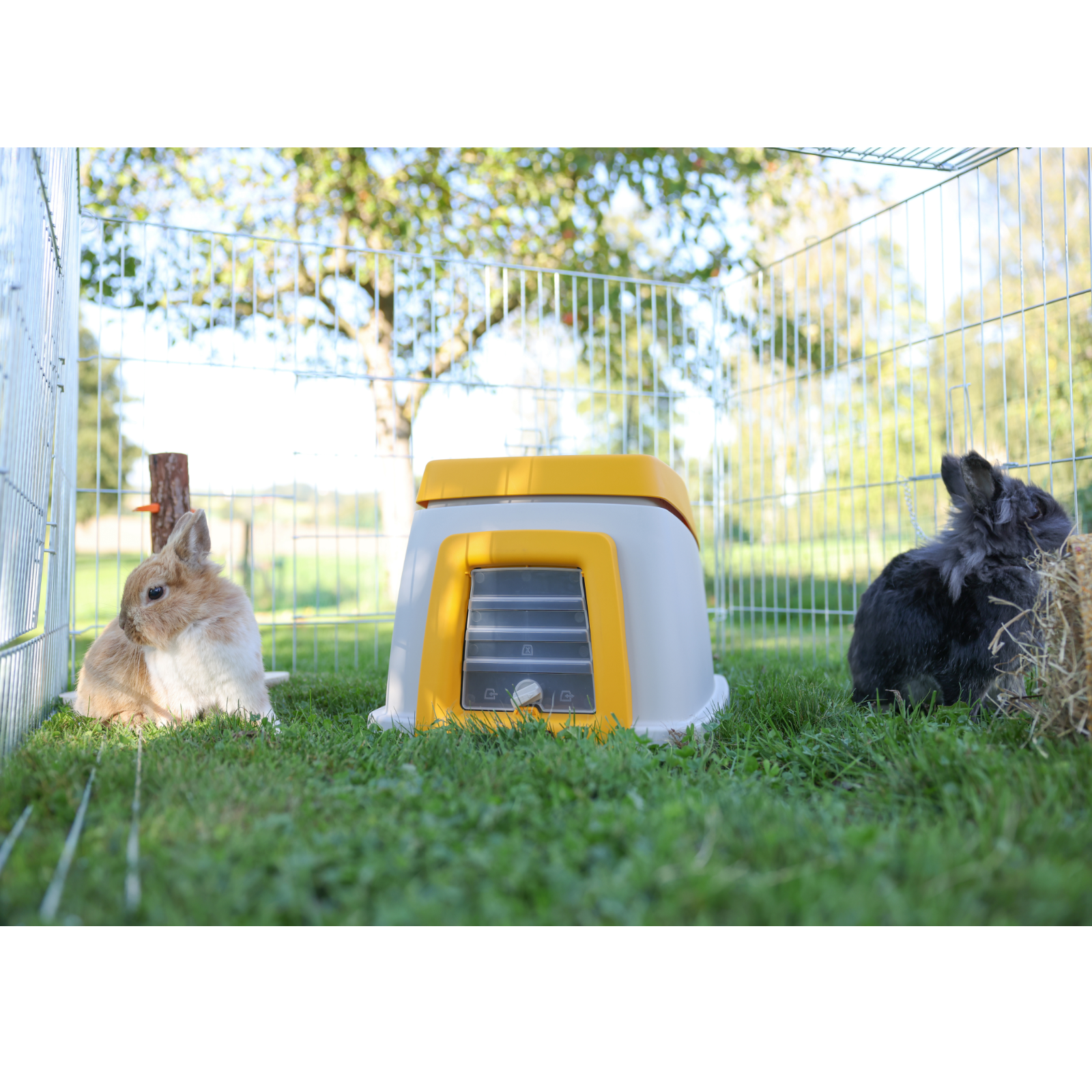 DasBunny Base Kaninchenheim bietet Ihren Langohren nicht nur Schutz vor Wind und Wetter, sondern auch noch eine perfekte Versorgung: Die Heuraufe animiert zum Fressen und Spielen, ein Wasser- und Futterspenderermöglichen Ihnen, die Tiere unbesorgt auch mal über einen längeren Zeitraum alleine zu lassen.