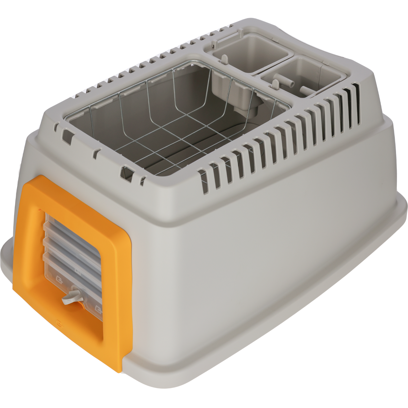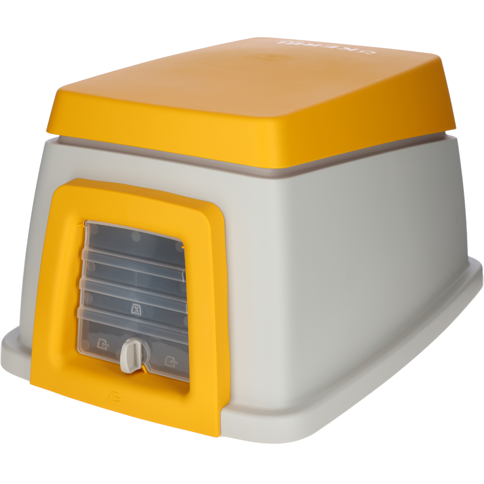 • flexible4-Wege-Türe (je nach Einstellung können die Tiere nur hinaus, nur hinein, hinaus und hinein oder die Türe bleibt verschlossen)
