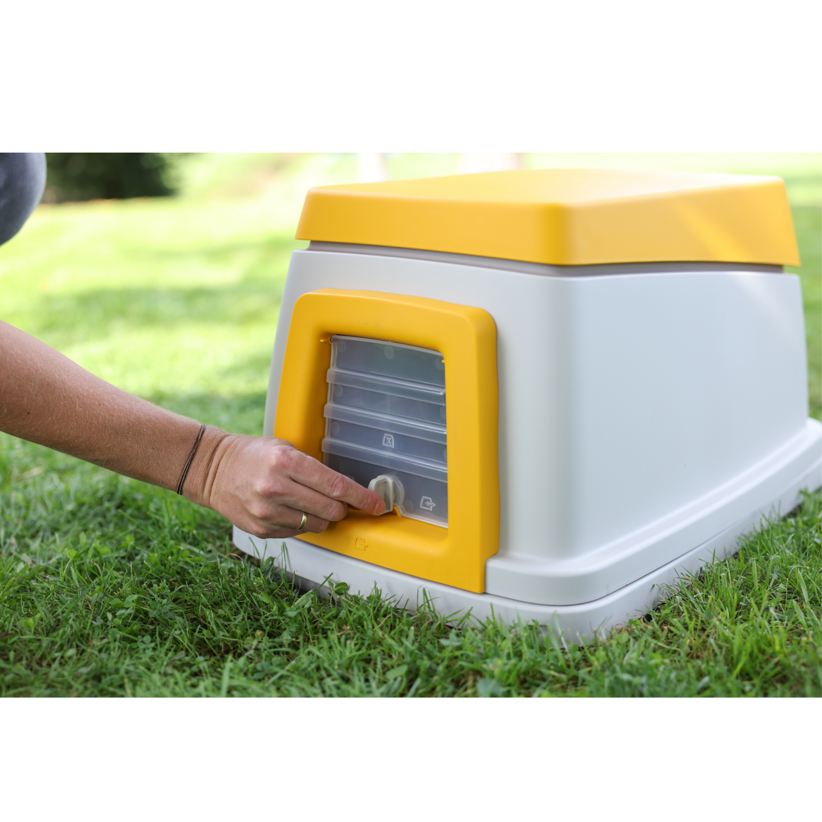 Abmessungen: 58 x 38 x 29,5 cm (LxBxH)Lieferumfang: 1 x Oberteil (ohne Erdbau), 1 x Tränke (375 ml), 1 x Futterautomat (850 ml), 1 x Heuraufe, 1 x geschlossener Boden,