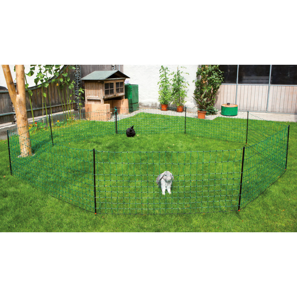 Elektrifizierbar! Netzhöhe 65 cm, Stromführung waagrecht mit 3 x 0,20 mm Niroleiter je Litze, für die Stromversorgung: an jedes starke Netz- oder Batteriegerät anschließbar. Extra kleine Maschenweite 5,9 cm gewährleistet höchste Hütesicherheit!Der beste Standplatz ist unter einem Vordach an der Wetter abgewandten Seite.Achten Sie bei der Auswahl der richtigen Größe auf die länderspezifischen Tierschutznormen!