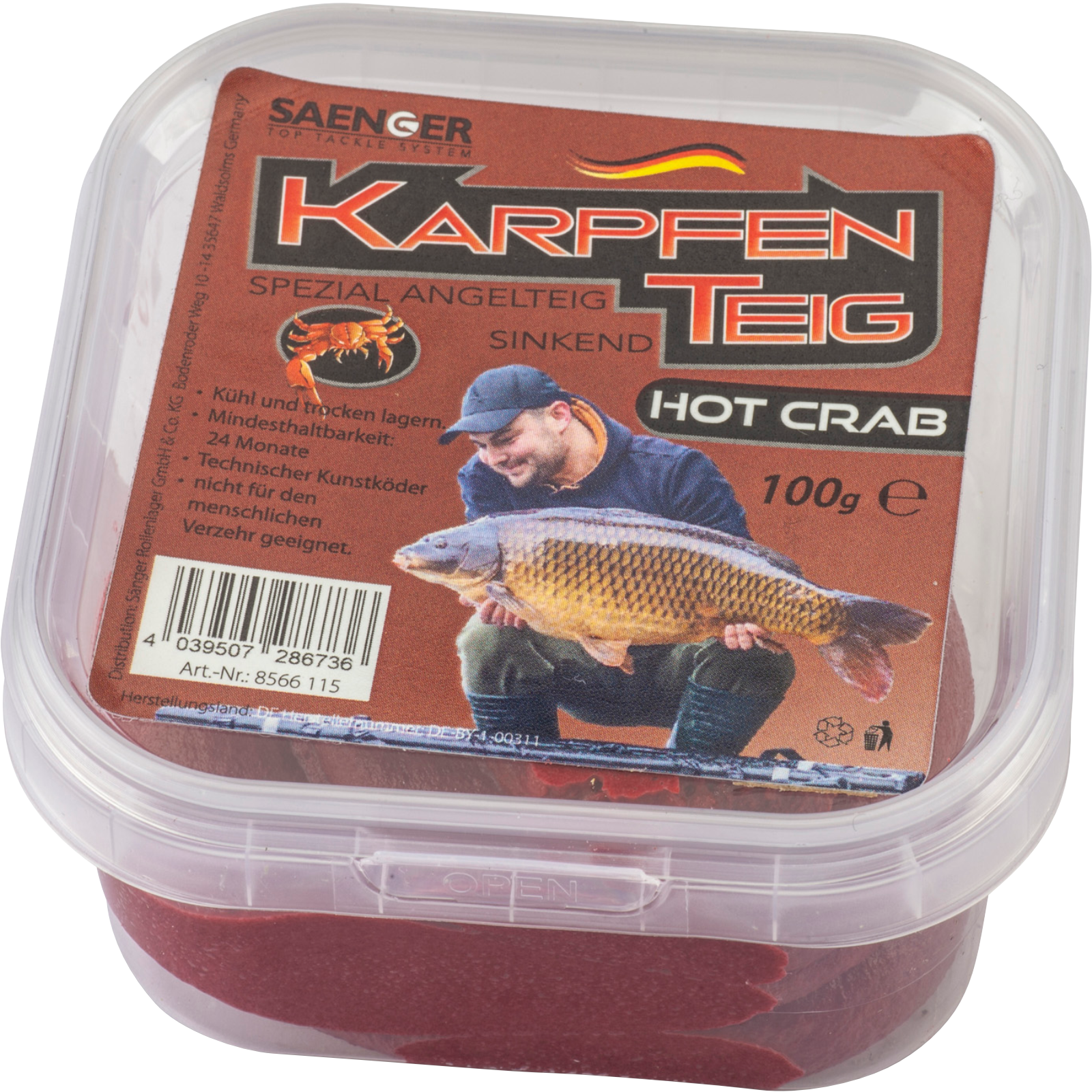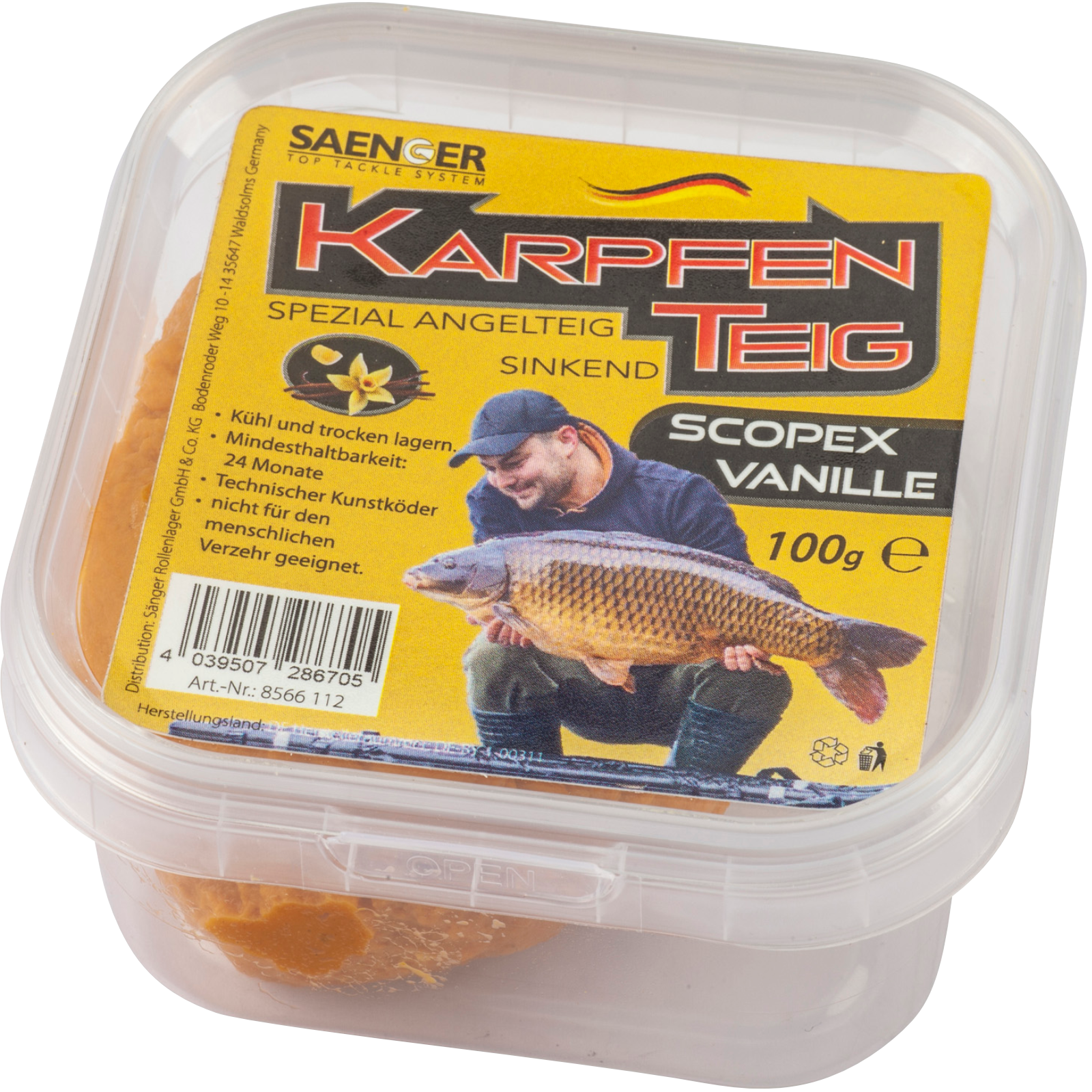 Die Sänger Karpfenteige sind mit Proteinen, Stimulatoren und lockintensiven Aromen hergestellt.Die Teige sind sehr gut formbar und halten auch sehr lange am Haken im Wasser. Ideal auch zum Schlepp- und Posenfischen da sinkend und nicht wie viele herkömmliche Teige schwimmend. Doseninhalt 100g, diese wieder verschließbar.Made in Germany