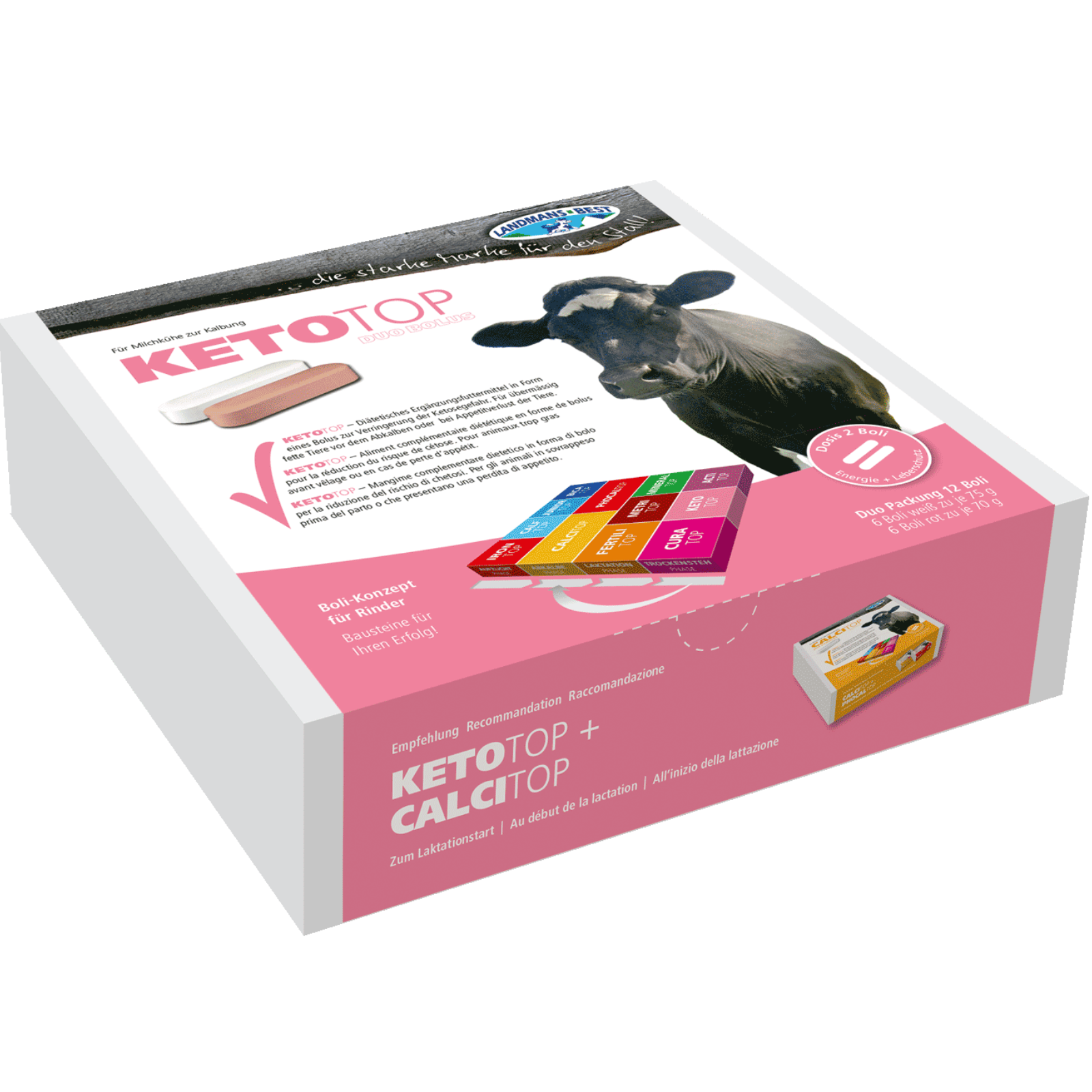 Empfohlen für übermäßig fette Tiere vor dem Abkalben oder bei Appetitverlust der Tiere. Eine Dosis KETOTOP besteht aus einem weißen Bolus und einem roten Bolus zur Verbesserung der Energieversorgung und der Leberfunktion. Zusätzlich stimulieren leberschützende Kräuterextrakte die Gallenproduktion und wirken appetitanregend.