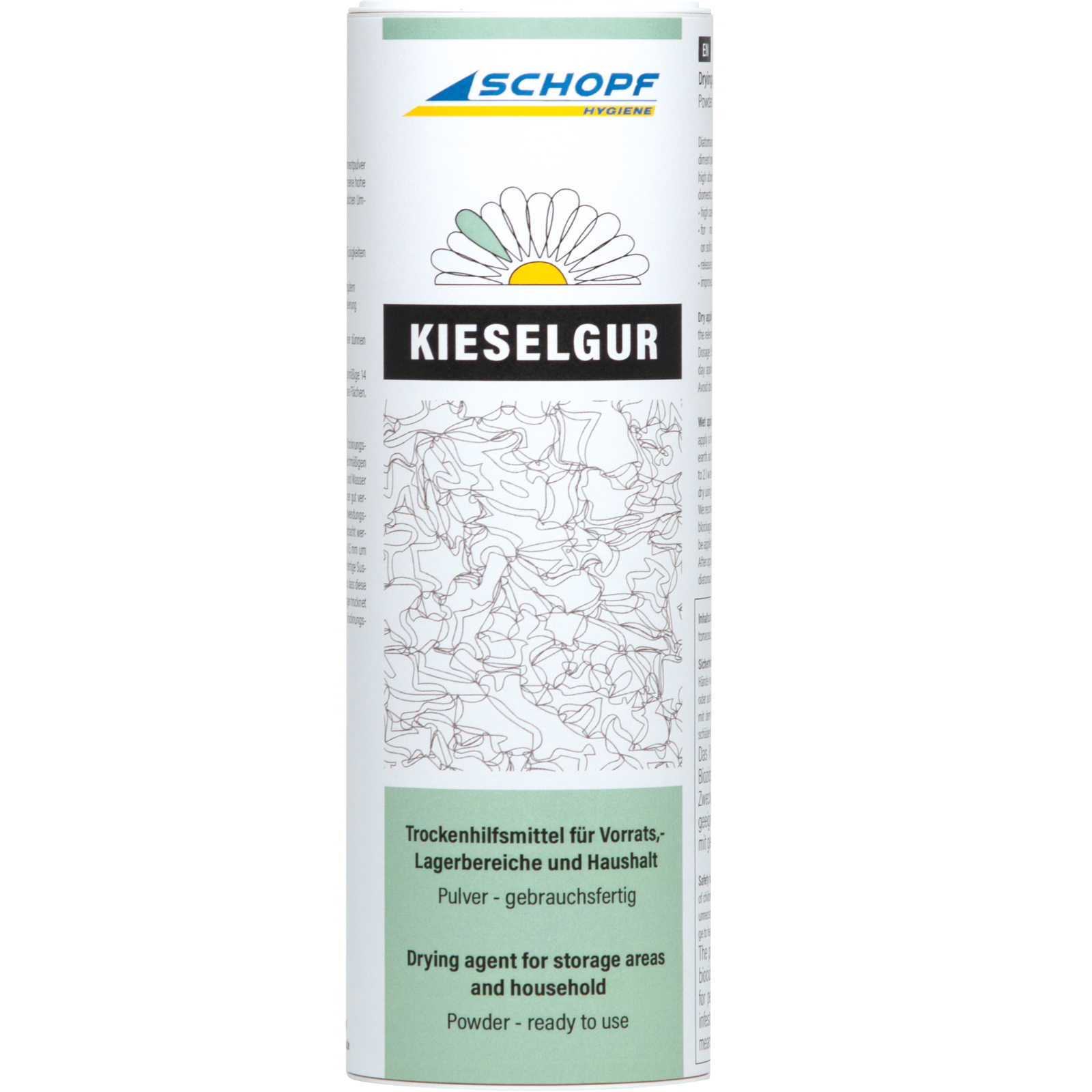 Inhaltsstoff: 100 % Kieselgur/DiatomeenerdeSicherheitshinweise: Staub nicht einatmen. Darf nicht in die Hände von Kindern gelangen. Nicht in die Augen, auf die Haut oder auf die Kleidung gelangen lassen. Jeden unnötigen Kontakt mit dem Mittel vermeiden. Missbrauch kann zu Gesundheitsschäden führen.