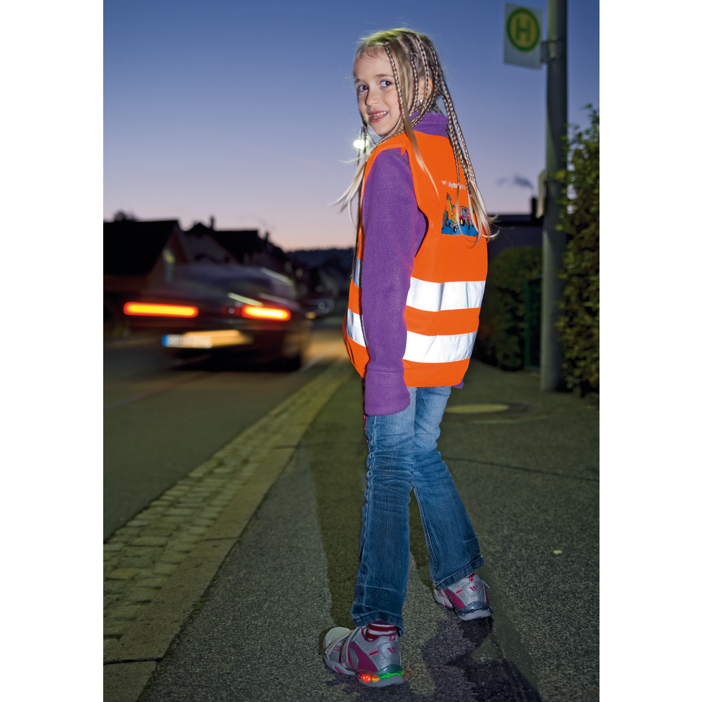 Die Kinder-Sicherheitsweste bietet den Kleinen mehr Schutz im Straßenverkehr. Mit Klettverschluss. Farbe: fluoreszierend orange.