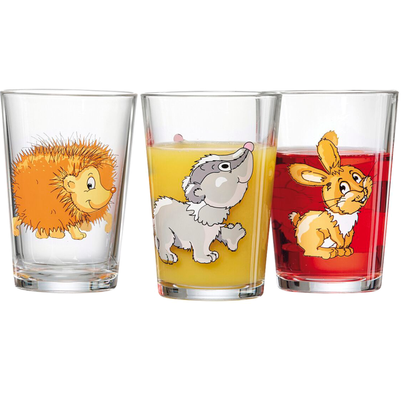 Bringen Sie mit unserem 3-teiligen Set Kindergläser Waldtiere die Magie der Natur direkt an Ihren Esstisch!Diese liebevoll gestalteten Kindergläser sind mit fröhlichen Motiven von Waldtieren wie Igelchen, Dachs und Häschen verziert, die nicht nur die Fantasie Ihrer Kinder anregen, sondern auch ihre Freude am Trinken fördern. Ideal für Saft, Wasser und andere Kindergetränke, macht dieses Set jede Mahlzeit zu einem Abenteuer.
