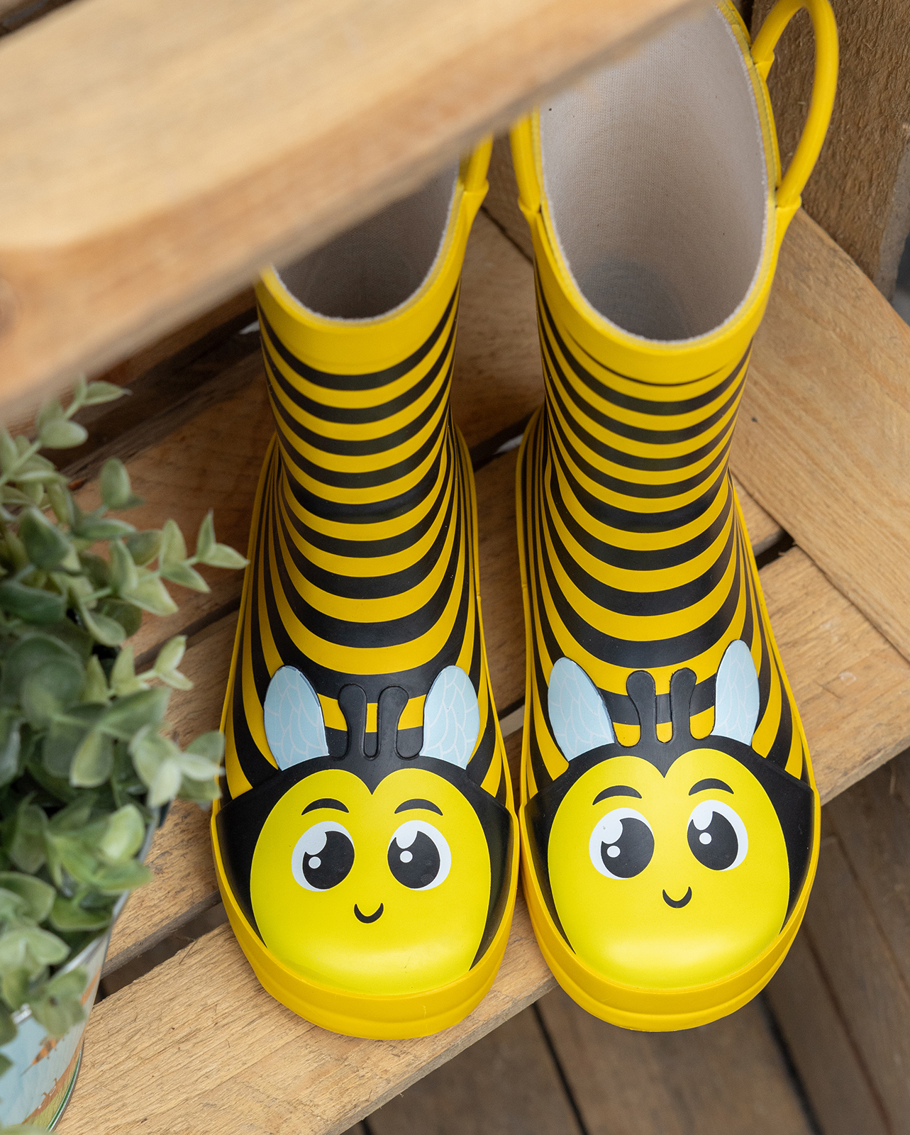 Kinderstiefel mit fröhlichem Insektenmotiv. Die Stiefel haben Griffe, die das Anziehen erleichtern. Sie schützen Kinder vor Regen und halten die Füße trocken, sodass sie auch bei Regen draußen weiterspielen können.- Lustiges Motiv- guter Schutz vor Regen,MaterialGummi, Polyester, EVA
