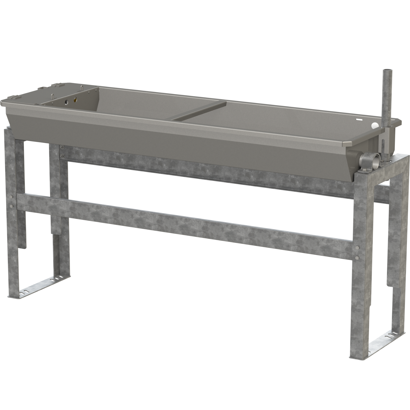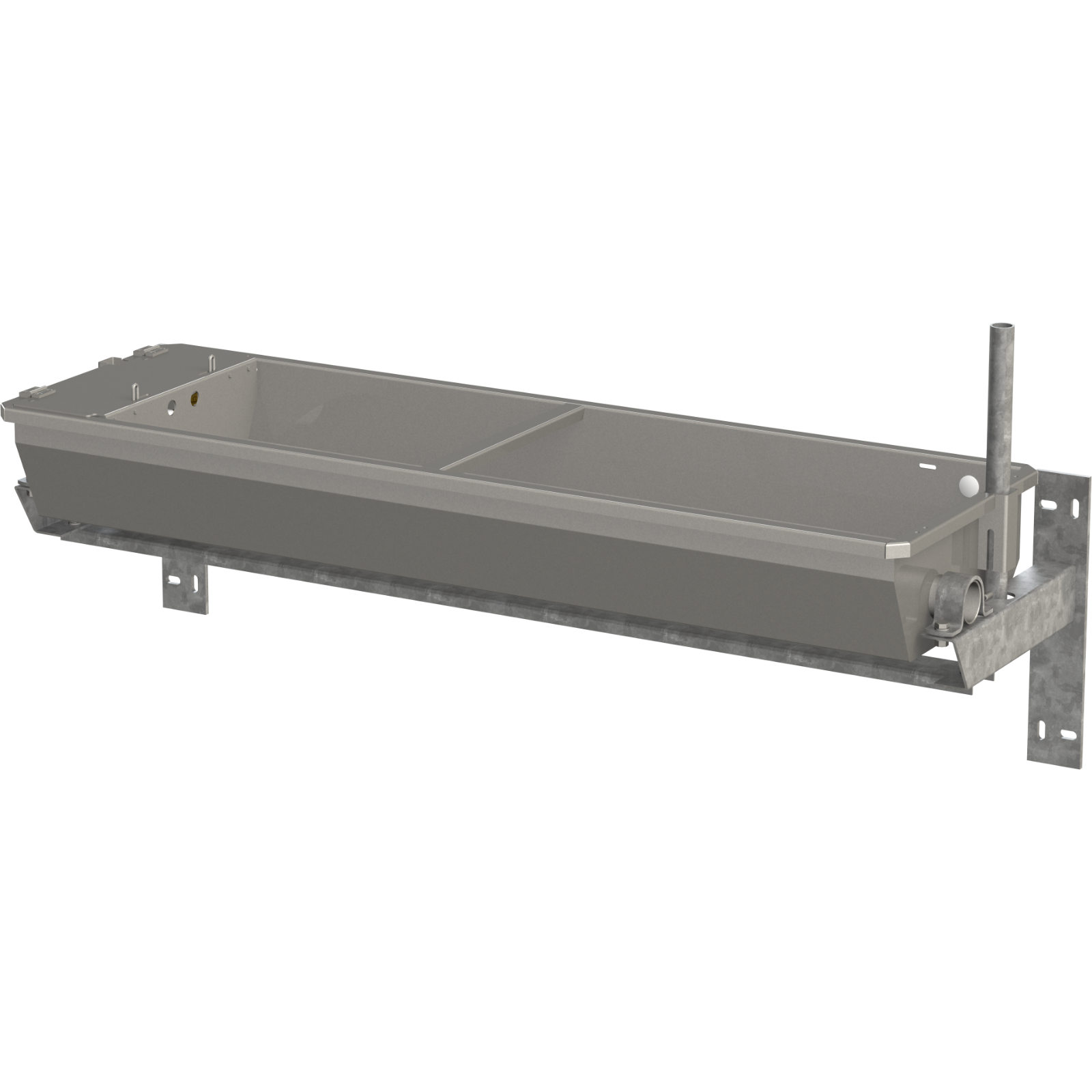 Kipptränke 2 m: Innenmaß Tränkewanne 188 x 40 x 17 cm (LxBxH), Außenmaß mit Wandkonsole 203 x 45 x 43 cm (LxBxH), Außenmaß mit Bodengestell 203 x 45 x 88 cm (LxBxH)
