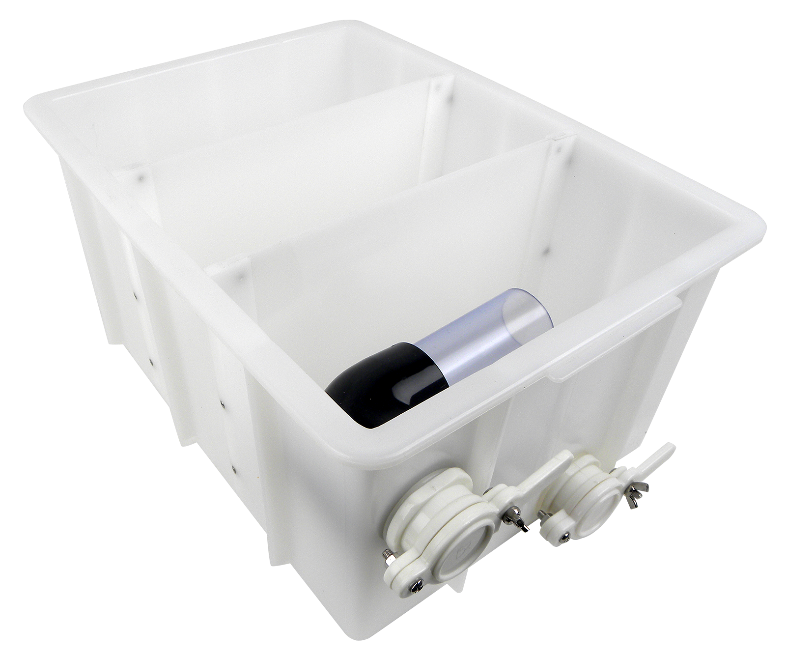 Vollkunststoff-Honigsumpf kann circa 35 kg Honig aufnehmen. Passt unter fasst allen Honigschleudern, wird direkt unter dem Auslass der Schleuder gestellt.Beschleunigt die Klärung des Honigs durch drei Kammern. Feine, leichte Partikeln schwimmen auf und die schweren setzen sich ab. Als zusätzliche Klärstufe ist der Ablasshahn mit einem beweglichen Rohr verbunden, das fast auf den Boden des Beckens reicht. Ein zweiter, am Boden sitzender Hahn wird zum Entleeren des Beckens benötigt. Leichte und funktionelle Handhabung, einfache Reinigung durch herausnehmbare Trennschiede.Da der Honigsumpf verhältnismäßig klein, kompakt und zur Gänze aus Kunststoff hergestellt ist, kühlt der Honig nicht so schnell ab. So wird auch ohne Heizung bei entsprechender Umgebungstemperatur ein sehr gutes Klärergebnis erreicht.Beckengröße circa 42 x 31 x 22 cm tiefAblaufhahn und Durchflusshahn je 1 ½ Zoll