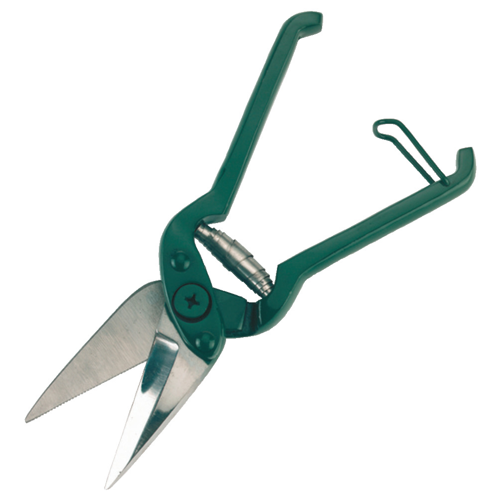 Gezahnte Klauenschere für Schafe aus grün lackiertem Metall. Robuste Ausführung und hochwertige Schneidbacken! Länge 26 cm.