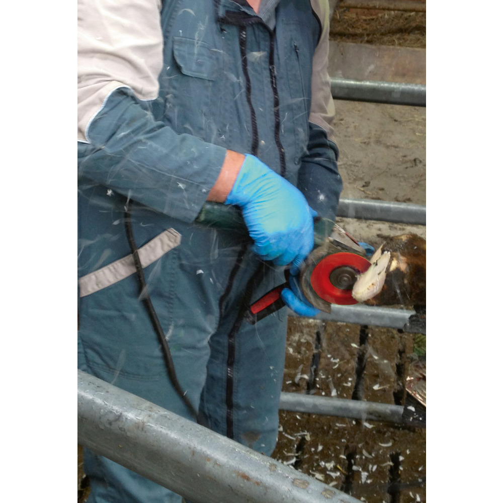 Die erfolgreiche Klauenschneidscheibe P 6: Durch nochmals optimierte Geometrie und Anordnung der Schneidsätze kann mit der P6 sowohl die Klauensohle als auch der Klauenzwischenspalt ausgezeichnet bearbeitet werden. Je nach Erfahrung und Praxis des Anwenders stellt die P6 für alle Anwendergruppen ein optimales Werkzeug dar! Weitere Vorteile der neuen P6: