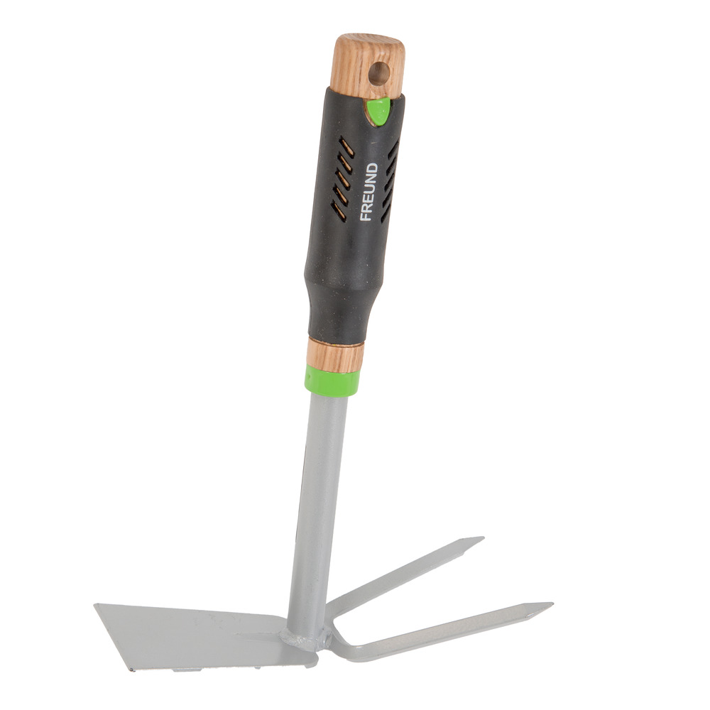Das Kleinhäckchen von Freund ist aus hochwertigem Stahl und pulverbeschichtet, hat einen Eichenholzgriff und besteht aus Zweizack und Flachform - Gesamtlänge 29 cm. Bestens geeignet zum Arbeiten im Hochbeet, am Balkon oder für die Grabpflege.