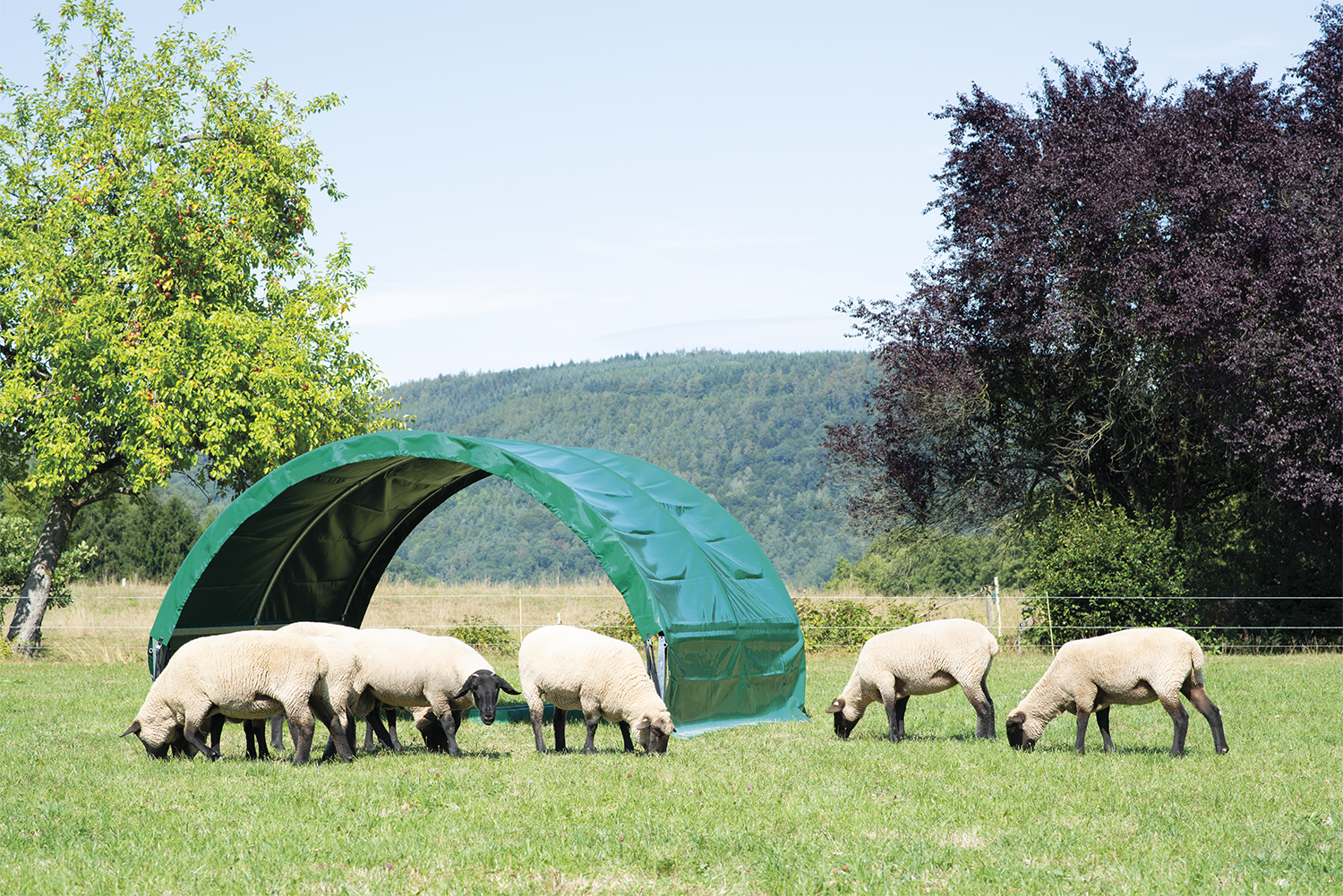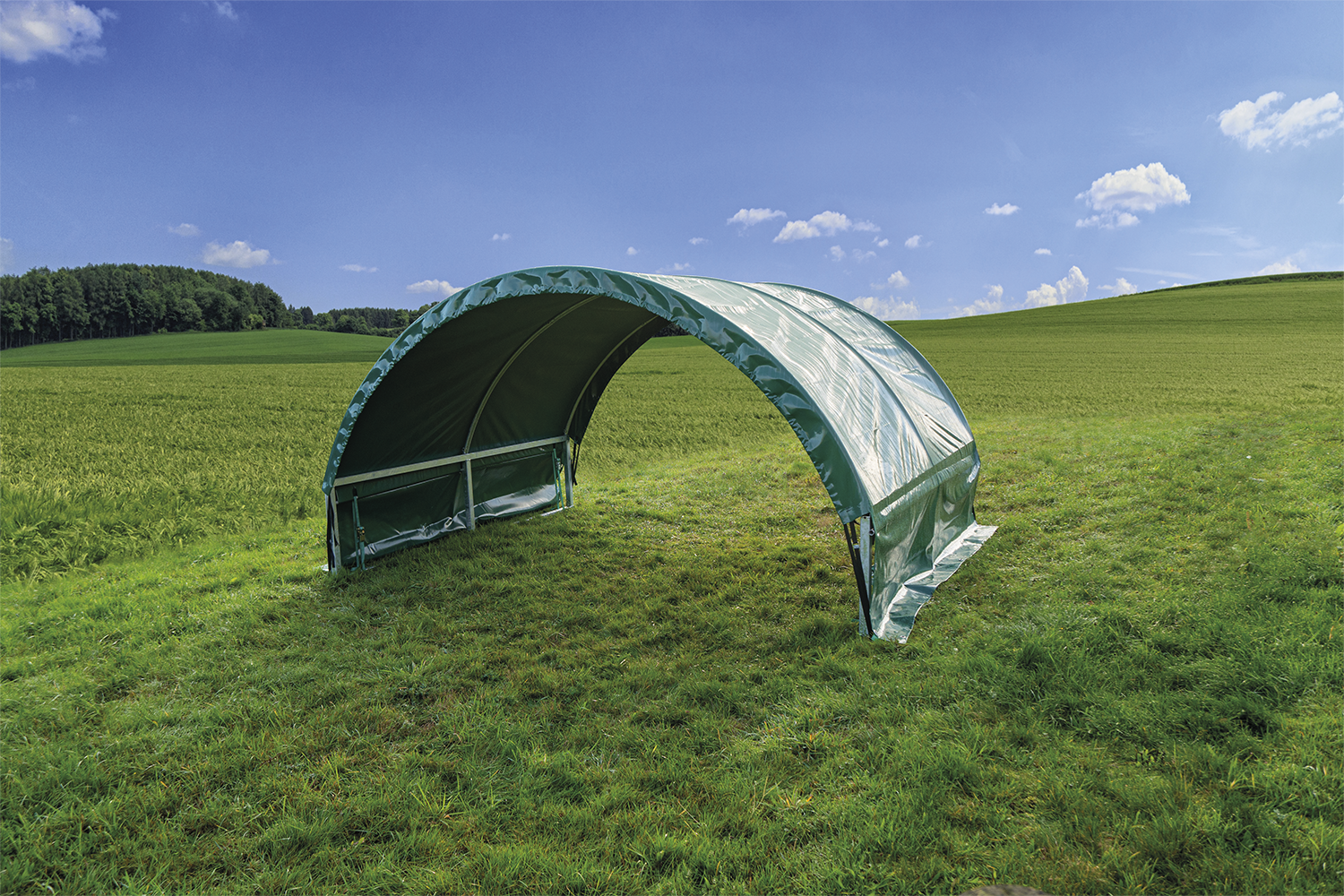 Das Weidezelt in Rundbogenbauform bietet Schafen, Ziegen oder anderen Kleintieren einen idealen Schuts vor Sonnde, Wind und Wetter. Komplett mit Gestänge und grüner Wetterschutzplane (640 g/m²). Innenhöhe 2,05 mNicht ohne ausreichende Sturmsicherung verwenden! Erdnägel (8 Stück für 3 m Version, 16 Stück für 6 m Version) bitte separat bestellen.