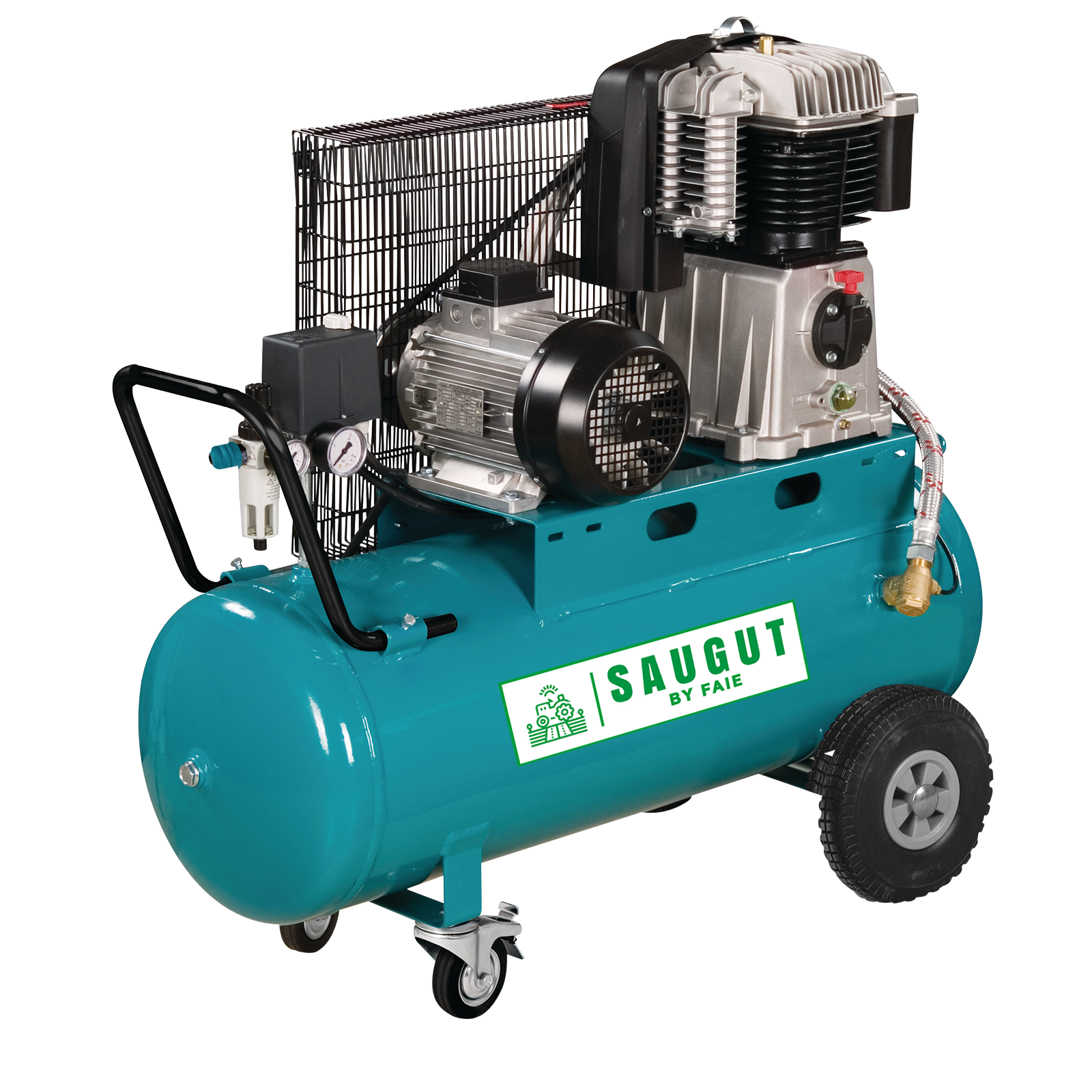 Ergonomischer Bügel, Gummihandgriff und Transportgriff am Druckluftbehälter für einen bequemen Transport