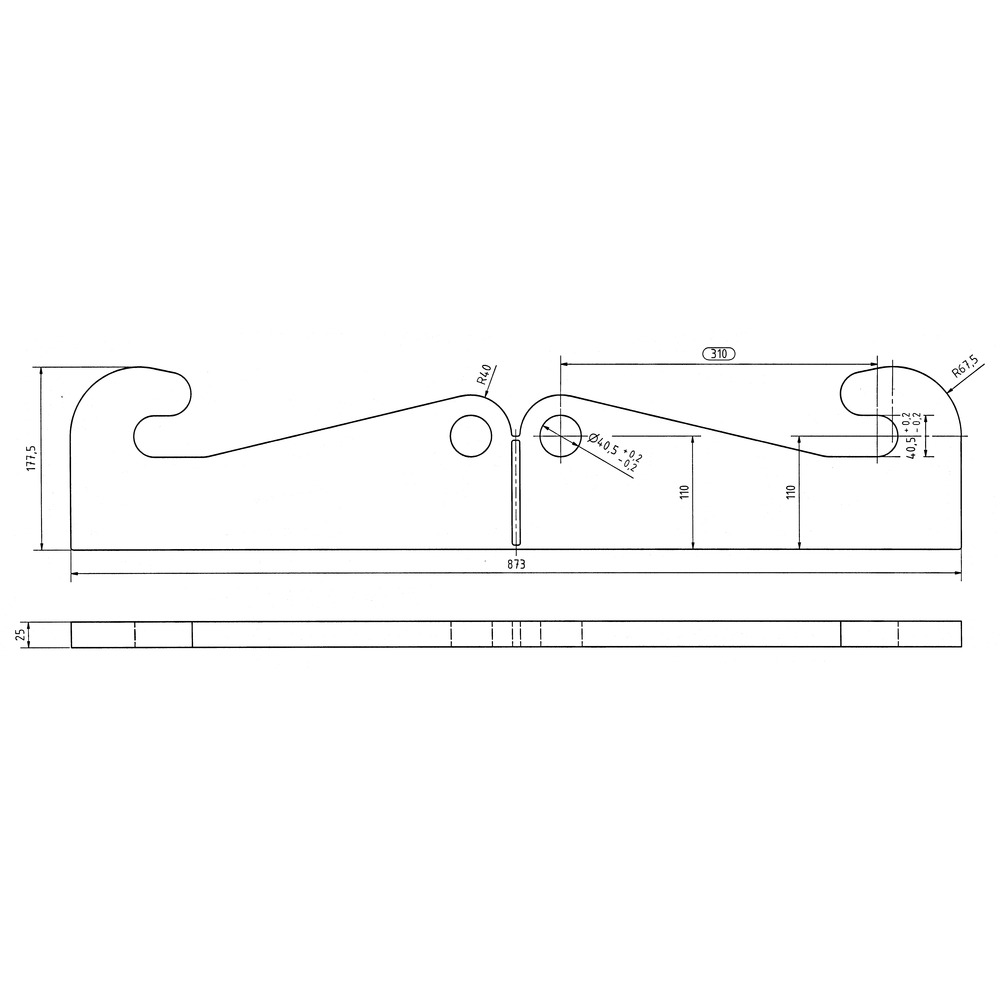 Haken 40,5 mm, Verriegelungsöse 40,5 mm, Lochabstand 310 mm, 1 Paar