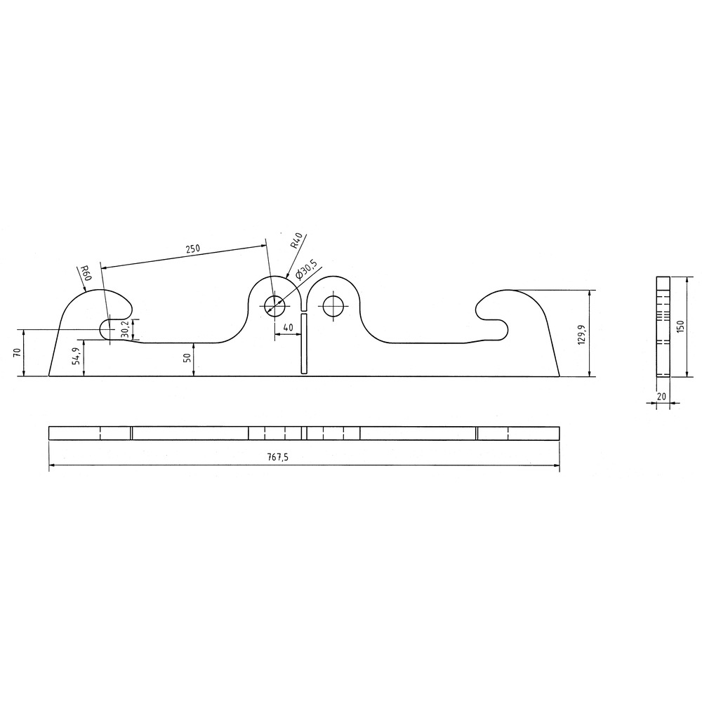 Haken 30 mm, Verriegelungsöse 30 mm, Lochabstand 250 mm, 1 Paar