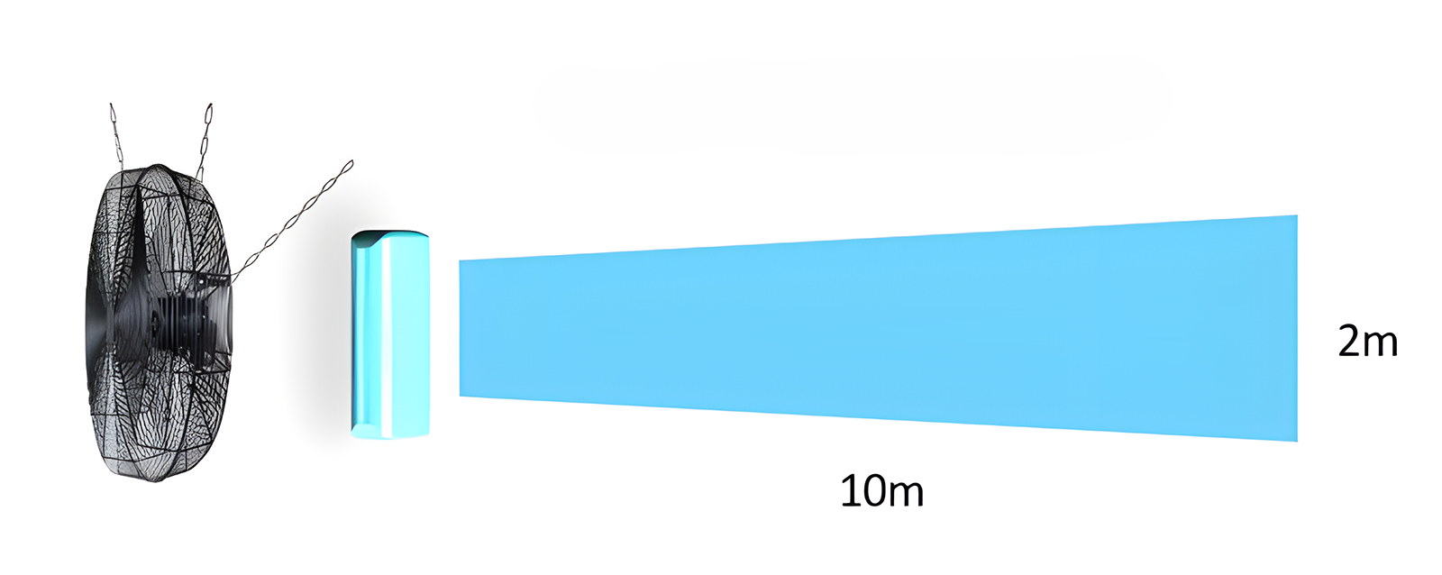 Der Korblüfter S20 deckt ca. 40 m², empfohlener Abstand zwischen den Ventilatoren ca. 8 m.
