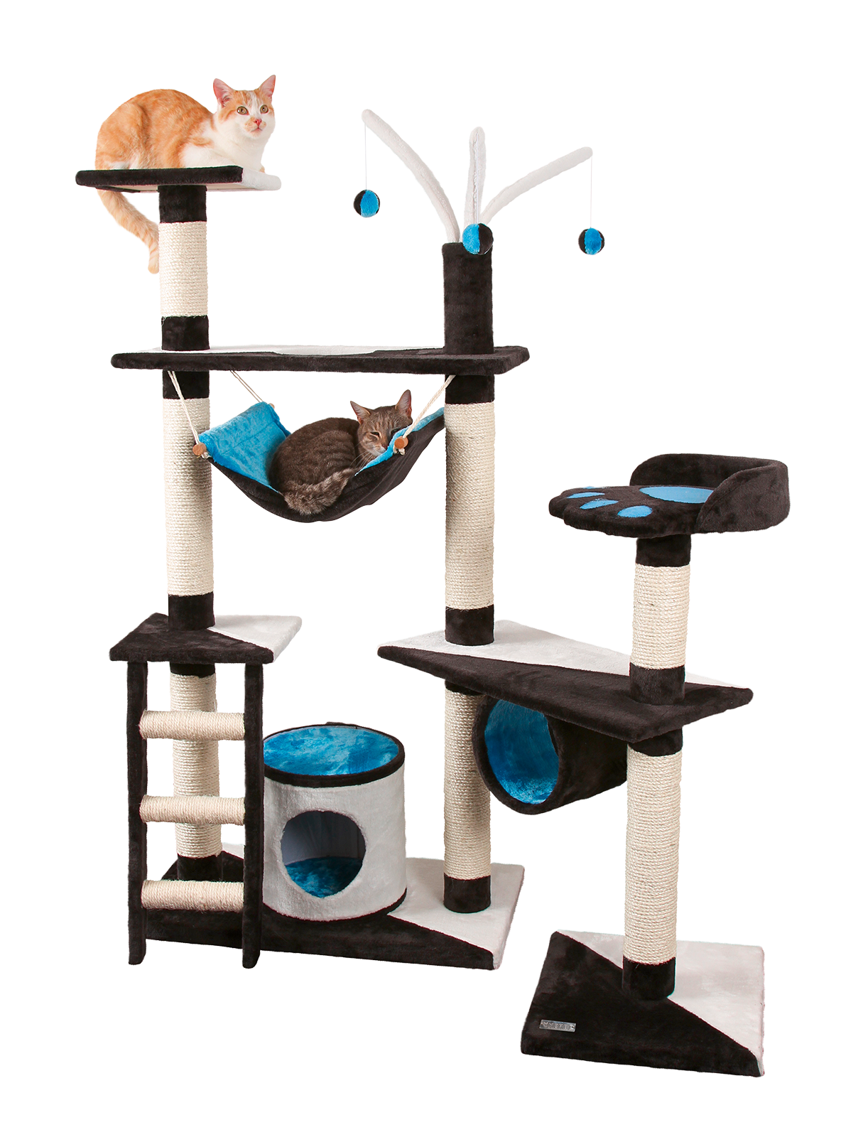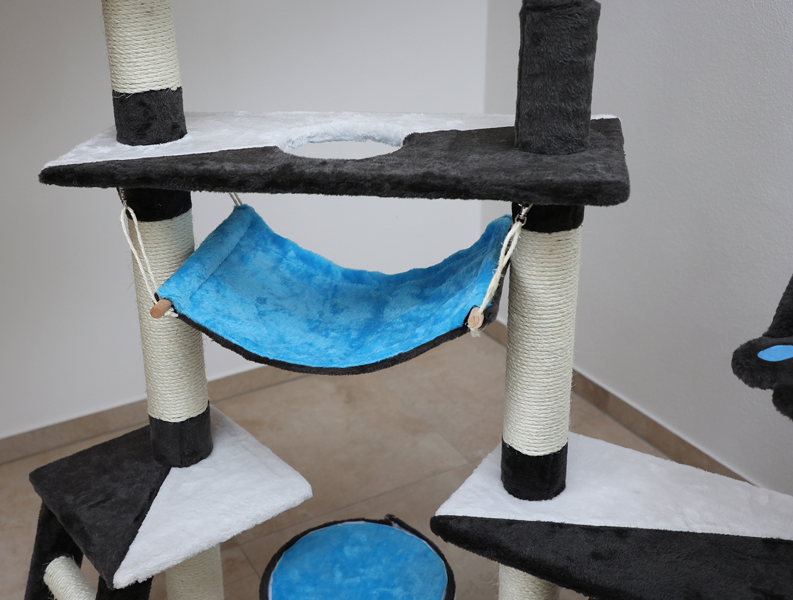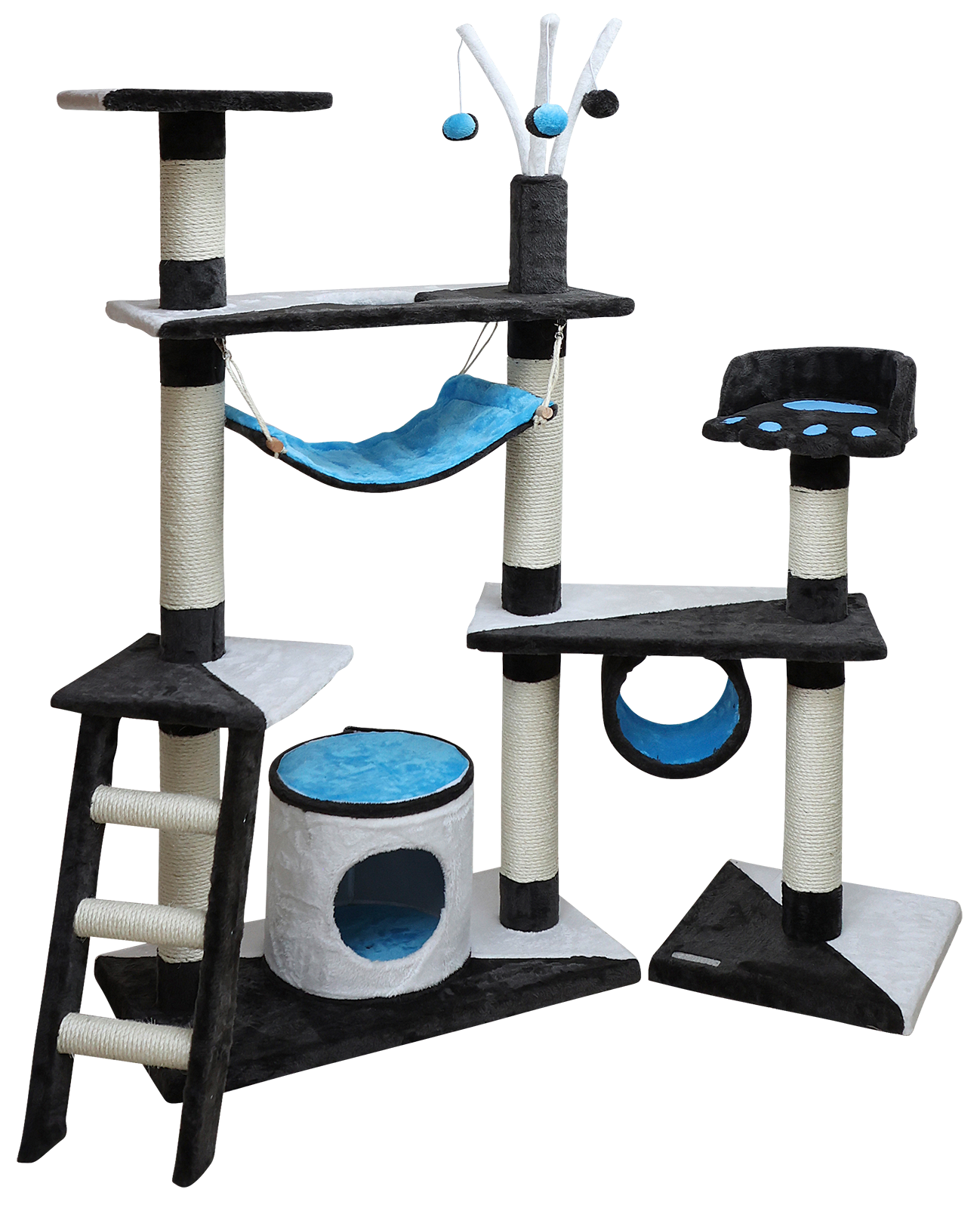 Der Katzen-Kratzbaum Creativ ist ein Muss für alle Katzenfreunde!Dieser vielseitige Kratzbaum bietet Ihrer Katze zahlreiche Spiel- und Klettermöglichkeiten.Mit robusten Sisalstämmen, gemütlichen Liegeflächen und einem spannenden Versteck wird Ihre Katze bestens unterhalten.Der Katzenbaum fördert die Gesundheit und das Wohlbefinden Ihrer Samtpfote durch aktives Spielen und Kratzen.Er ist leicht aufzubauen und passt perfekt in jedes Zuhause.Gesamthöhe 150 cm, Farbe anthrazit/weiß/blau