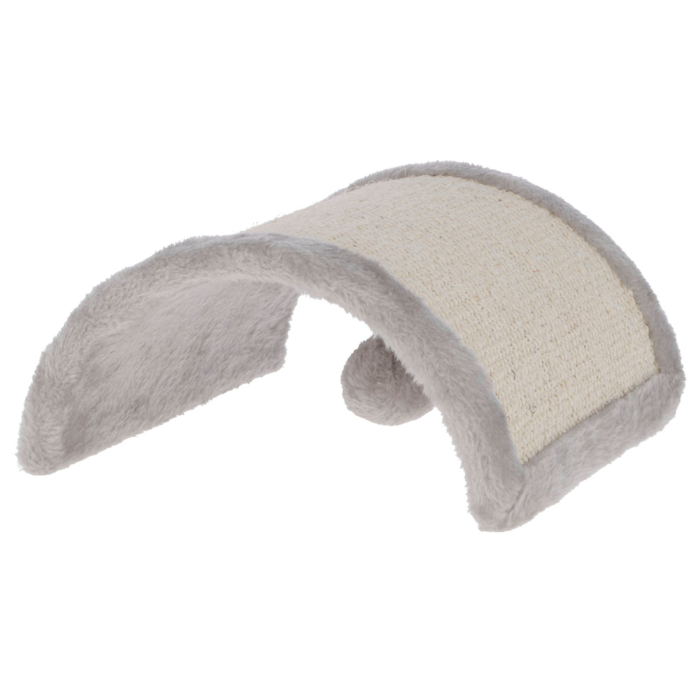 Graues Kratzbrett mit einer Kratzfläche aus Sisal. Inklusive Plüschball, der unten dranhängt. 26x22x11 cm