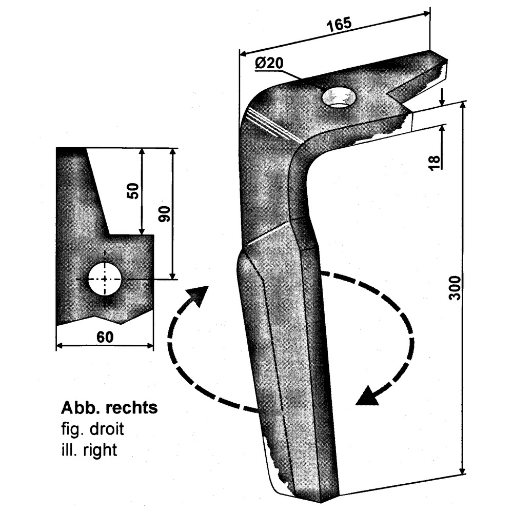 Schnellwechselzinke mit Bohrung 20mm, 18 mm stark