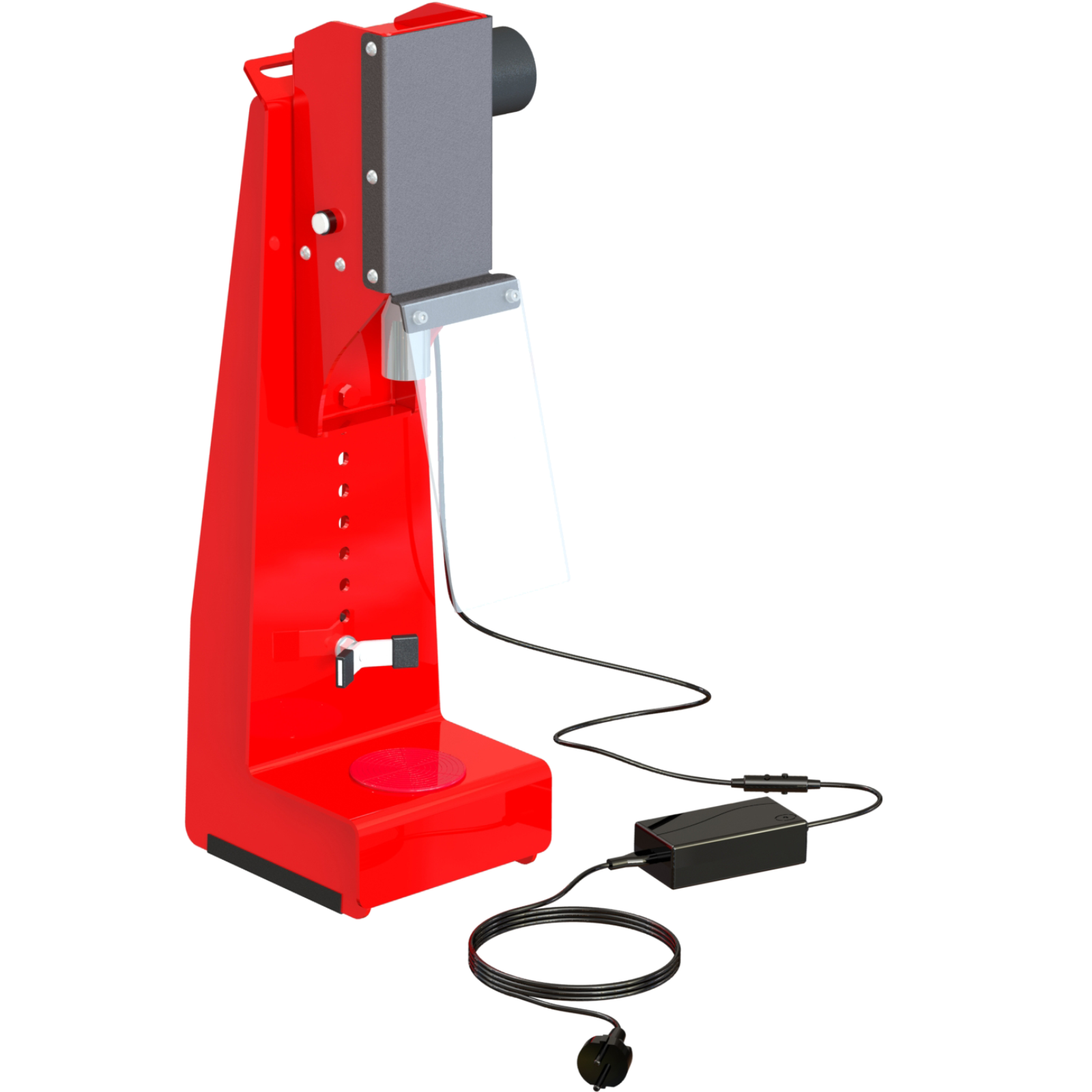 Ausgestattet mit professionellen Buchsen für Kronkorken mit einem Durchmesser von 26/29 mm.Die Maschine kann zum Aufbringen vonKunststoff-Sektkorken und bei Verwendung einer speziellen Vorrichtung auch für Ölverschlüsse mit Vorgewinde verwendet werden.Die Stromversorgung beträgt 230 V.