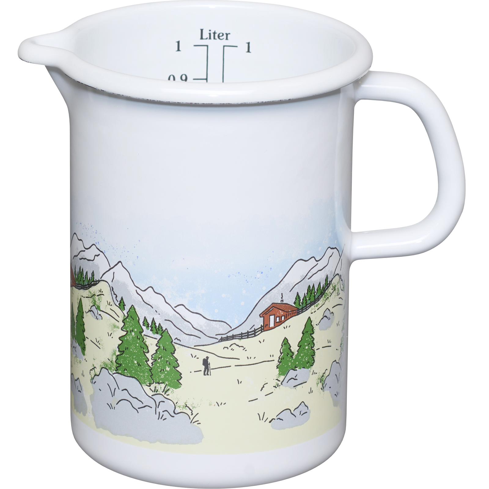 Das Küchenmaß, auch Messbecher genannt, dient zum genauen Abmessen von Koch- und Backzutaten wie Mehl, Zucker, Milch, Wasser und anderen Flüssigkeiten, ob heiß oder kalt.Im Inneren des Bechers befinden sich zwei Skalen: eine in Litern mit Centiliter-Einteilungen und je nach Größe des Küchenmaßes auch eine traditionelle österreichische Skala in ¼- oder 1/8-Liter-Schritten.Der Messbecher ist mit einem seitlichen Griff und einem praktischen Ausguss, dem sogenannten Schnabel, ausgestattet, der ein gezieltes Ausgießen ermöglicht. Der gebogene Rand, auch Bördelrand genannt, sorgt für zusätzliche Stabilität und ist eine typische Eigenschaft von Emaillegeschirr.Emaille entsteht aus Eisen, das bei hohen Temperaturen mit Glas verschmolzen wird – also aus natürlichen Rohstoffen.Die Oberfläche ist glatt, aromaneutral und einfach zu reinigen.Bei richtiger Pflege behält Emaillegeschirr lange seinen typischen Glanz und erfreut durch seine Langlebigkeit.