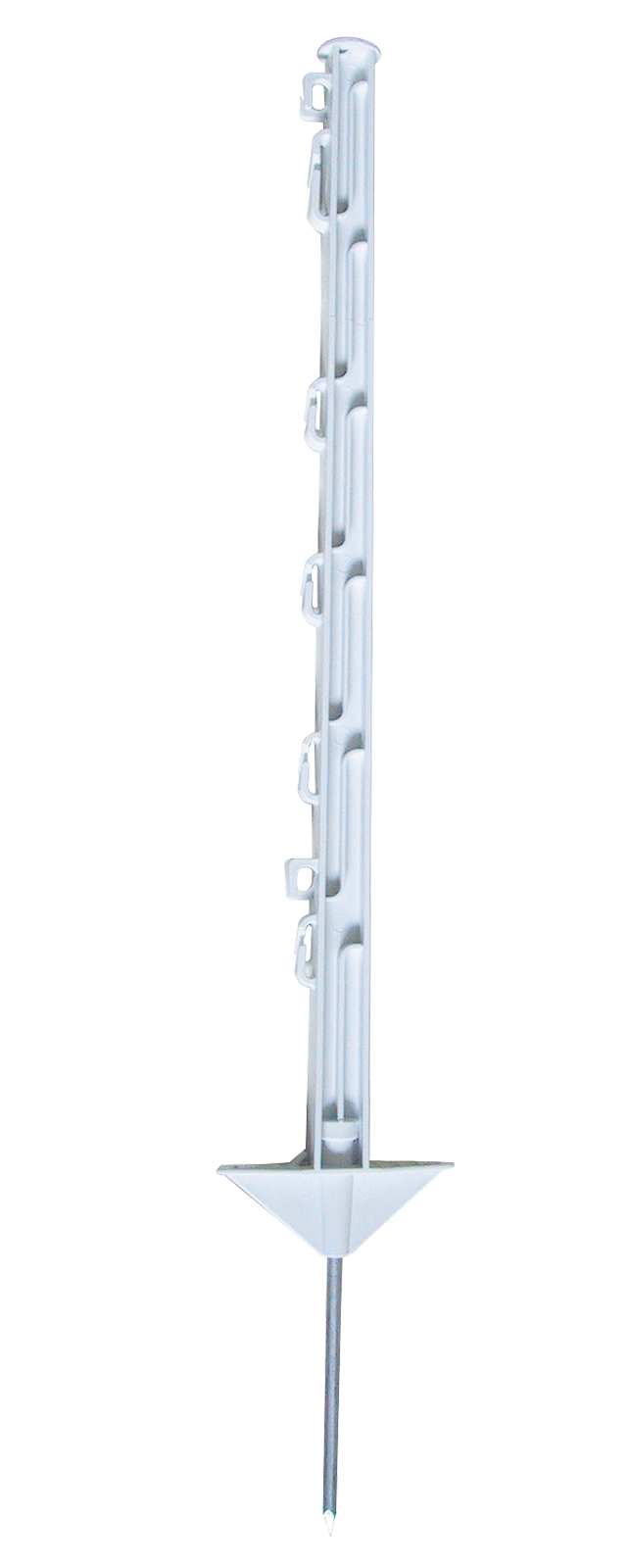 Äußerst stabiler weißer, schlagzäher Kunststoffpfahl.Gesamthöhe 75 cm.Ideal für den Einsatz als Wildpfahl gegen Wildschwein, Hase, Biber und Otter.Geeignet auch bei Minustemperaturen, für alle gängigen Bänder, Seile,Litzen oder Drähte.Hohe Standfestigkeit durch zusätzliche Längsverstrebungen, mit verzinktem Bodennagel 17 cm.Doppeltritt. Bandösen: 4x 20 mm, 1x 40 mm, Seilösen: 2x 10mm. Pack = 10 Stück