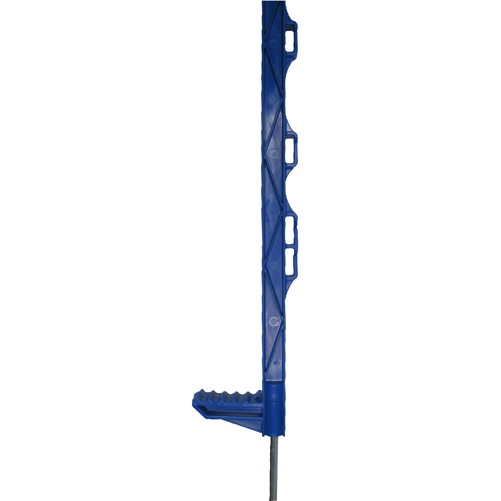 Blauer Kunststoffpfahl. Gesamthöhe 110 cm.Aus stabilem PP-Glasfaser-Kunststoff. Bodennagel verzinkt 17 cm.Band-/Seilösen: 8 x 20 mm, 2 x 40 mm. Pfahlprofil ca. 25 x 20 mm.Karton 20 Stück