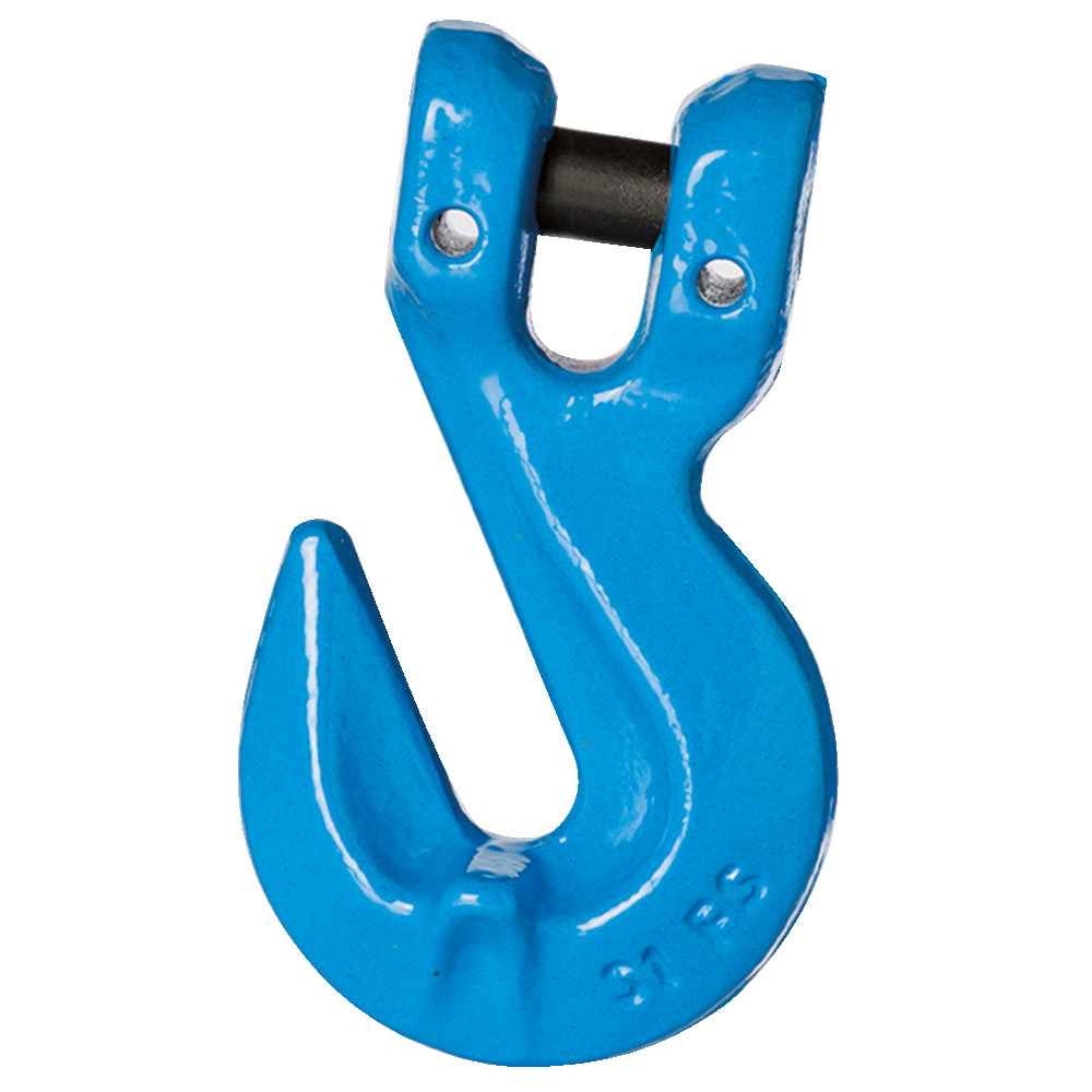 Hochfester Kuppelhaken zum Einhängen in die Kette, mit gesichertem Bolzen, zur Montage am Kettenglied