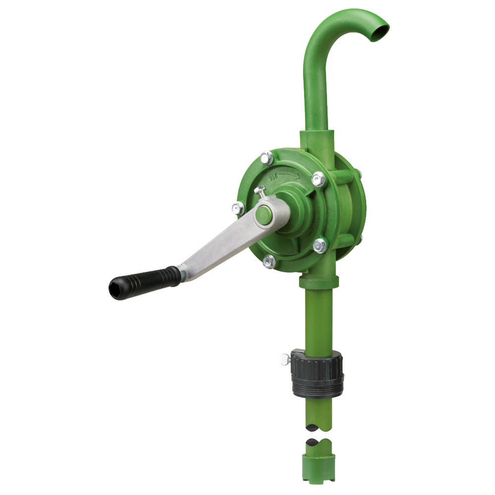 Profi Handpumpe mit ca. 22 L/min (0,18 L/Umdrehung) Förderleistung. Passend für alle gängigen 60/200/220 L Fässer mit G2“ Gewinde. Geeignet für Reinigungsmittel, Scheibenklar und organische Säuren und Alkohole sowie anorganische Chemikalien. Auslaufkrümmer 25mm AD.
