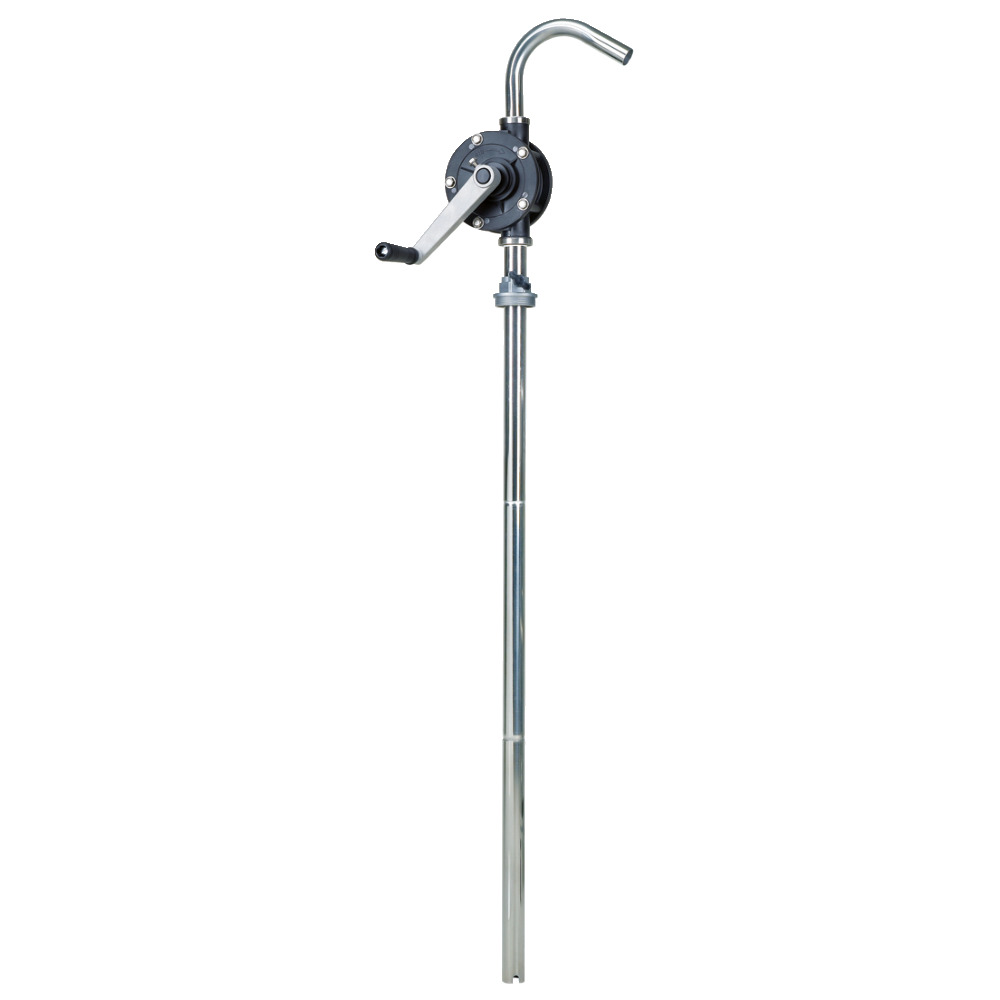 Profi Handpumpe mit ca. 22 L/min (0,18 L/Umdrehung) Förderleistung. Passend für alle gängigen 60/200/220 L Fässer mit G2“ Gewinde. Saugrohr (1020 mm) und Auslauf 25mm AD aus Inox. Geeignete für Wasser, Diesel, Säuren und Laugen