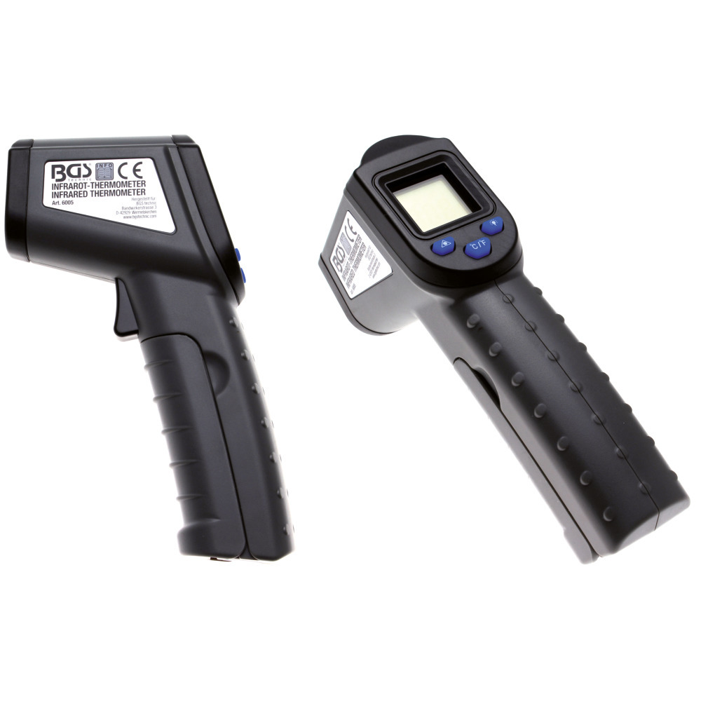 Berührungsloses Infrarot-Thermometer mit Laser-Zielpunkt. Ideal für hygienische Messungen in der Lebensmittelindustrie oder zur Fehlersuche im KFZ-Gewerbe und bei Heizungsanlagen.