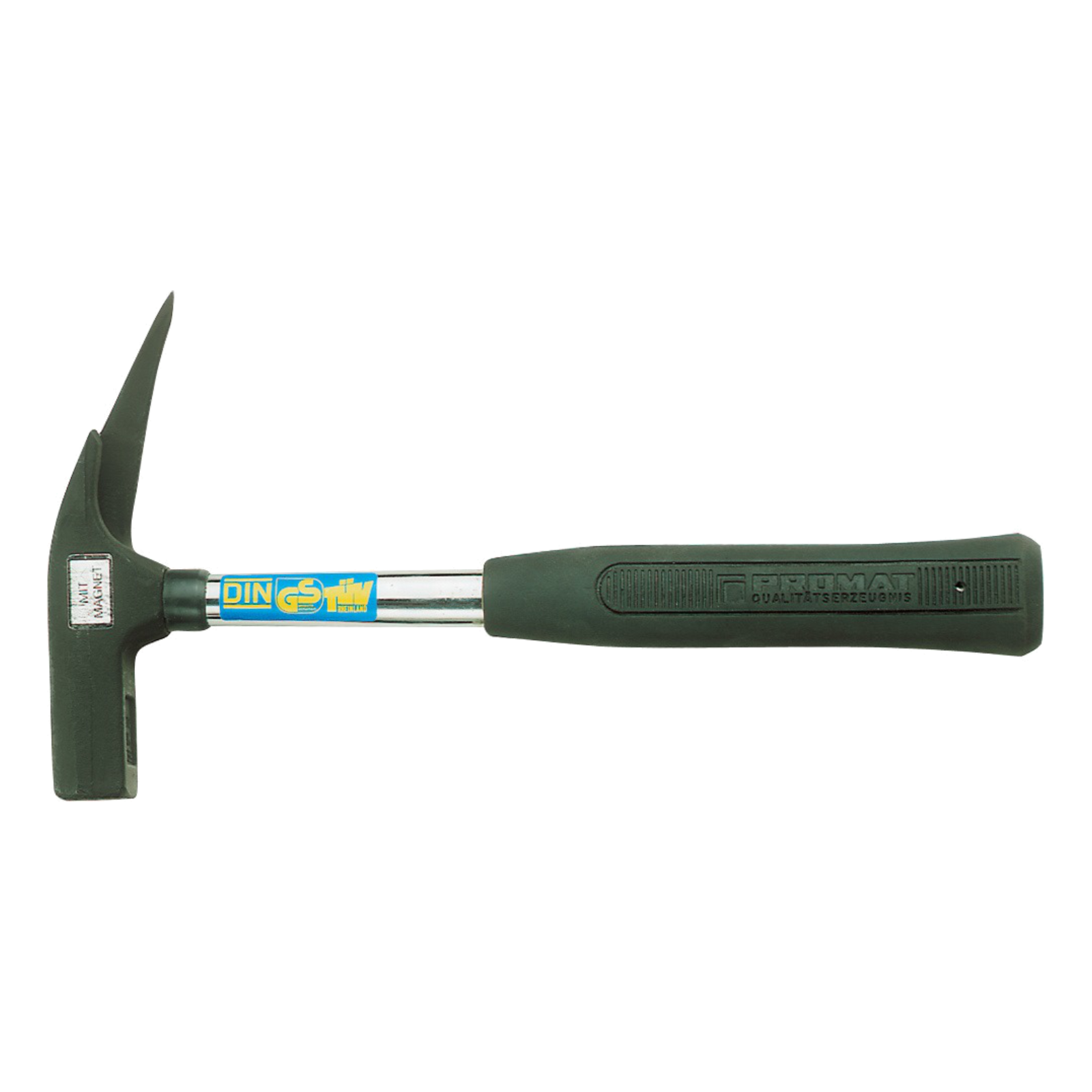 Nach DIN 7239 genormter Latthammer mit schwarzer Lackierung, Kunststoffgriff und Stahlrohrstiel und Stahlring für verbesserten Stielschutz