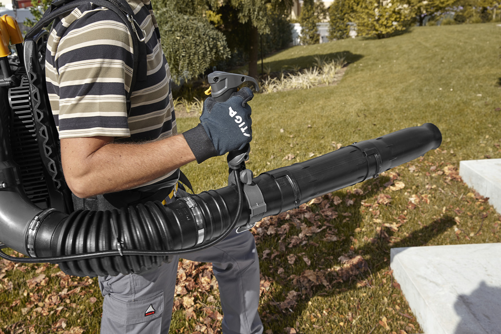 Mit einem maximalen Luftdurchsatz von 25 m³ pro Minute bewegt der Bläser auch feuchtes oder schweres Laub mühelos – ob auf Wegen, in Ecken oder unter Büschen.