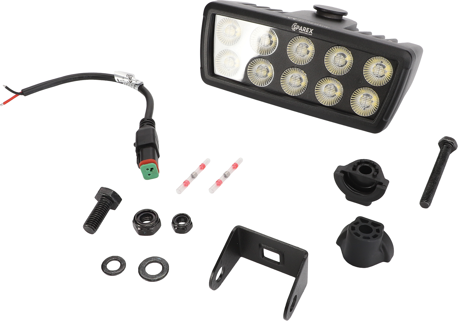 LED Arbeitsscheinwerfer für MF verwendbar anstelle ACW5056110, ACX3282930, 70 W, 10260 Lumen, Gehäuse Aluminium, Glas Polycarbonat, neigungsverstellbar, DT-Anschlusskabel ca. 20 cmTechnische Details:Leuchtmittel: 10 x Hochleistungs-LED a 7 WSpannung: 10-30 Volt DCLichtintensität: 7000 Lumen effektivLichtfarbe 6000kAbmessungen (BxHxT): ca. 172 x 91 x 93 mmSchutzklasse IP69KEMC Rauschunterdrückung, RoHS, ECE Reg10-E9