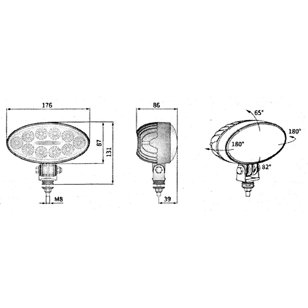 hochwertiger LED-Arbeitsscheinwerfer, 12-24V35W, 3000Lumen, Farbtemperatur 5700-7000KArbeitstemperatur: -40°C - +80°C, Schutzklasse IP69KBreitstrahler 60°, ECE R10, EMC zertifiziertAluminiumdruckguss-Gehäuse, Größe BxTxH: 176x86x131mm, Anschlusskabel 500mm