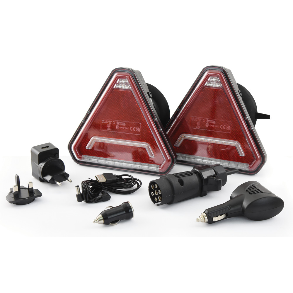 magnetisch, kabellos, wiederaufladbar, mit Überwachungsanzeige/SensorBlinker mit Neonlichteffekt, modernes Design mit klarem und hellem Lichtmit 6 Beleuchtungsfunktionen: Rücklicht, Blinker, Bremslicht, Kennzeichenbeleuchtung, Nebelschlussleuchte und DreieckreflektorDer Anzeigensensor für 12V Steckdose ist mit dem Funklicht drahtlos verbunden und informiert während der Fahrt über die Funktion und den Batterieladestand der Leuchten.Anzeigensensor einfach an die 12-V-Steckdose des Fahrzeugs stecken. Ein zusätzlicher Komfort der auch zusätzliche Sicherheit gewährt.Die ConniX Plus ist hell, einfach, einzigartig und mit intelligenter Technologie ausgestattet. Sie ist die erste Wahl für drahtlose BeleuchtungslösungenWechsel zwischen verschiedenen Fahrzeugen und Maschinen in Sekundenschnelle. Bestehend aus: Rückleuchte rechts, Rückleuchte links, 7-pol. Stecker, Sender/Transmitter, Anzeigensensor, Batterie Ladekabel,12V, bis 10 Stunden Akkulaufzeit, ECE R10, RoHS, IP65, -20°C/+50°C, Übertragung max. 20m, (nicht StVZO zugelassen)