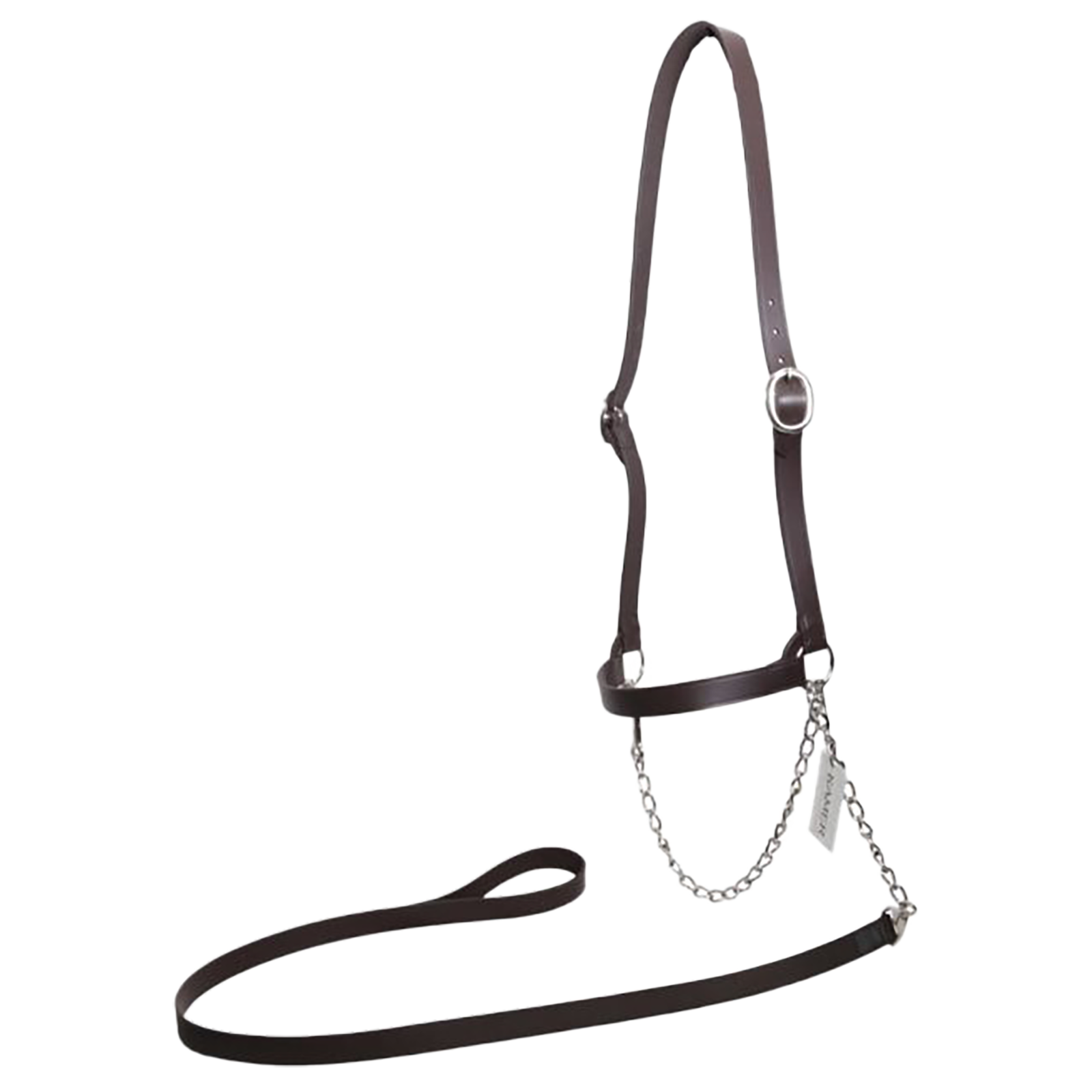 Braunes ​Vorführ-Lederhalfter mit Kinnkette für Kühe im amerikanischen Stil.