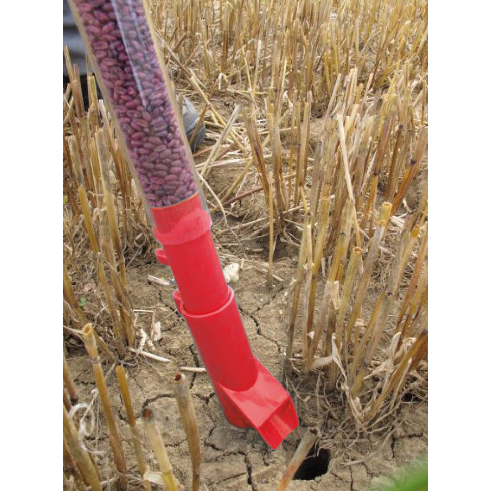 Handhabung: Durch senkrechtes Drücken der Legeflinte fallen aus dem Rohr mehrere Körner. Der Auslass wird durch Anheben der Flinte wieder verschlossen.