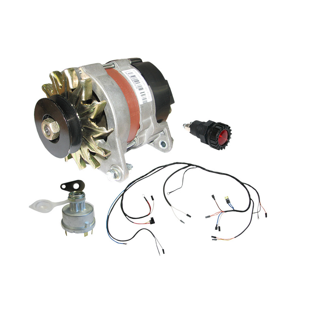 Bausatz zum Umbau von Gleichstrom- auf WechselstromlichtmaschineKeilriemenscheibenbreite: 13mmLichtmaschine 12 Volt 45ALieferumfang: Lichtmaschine, Kabelsatz, Startschalter ,Ladekontrolllampe und Halterung für Lichtmaschine Faie.Nr: 108139
