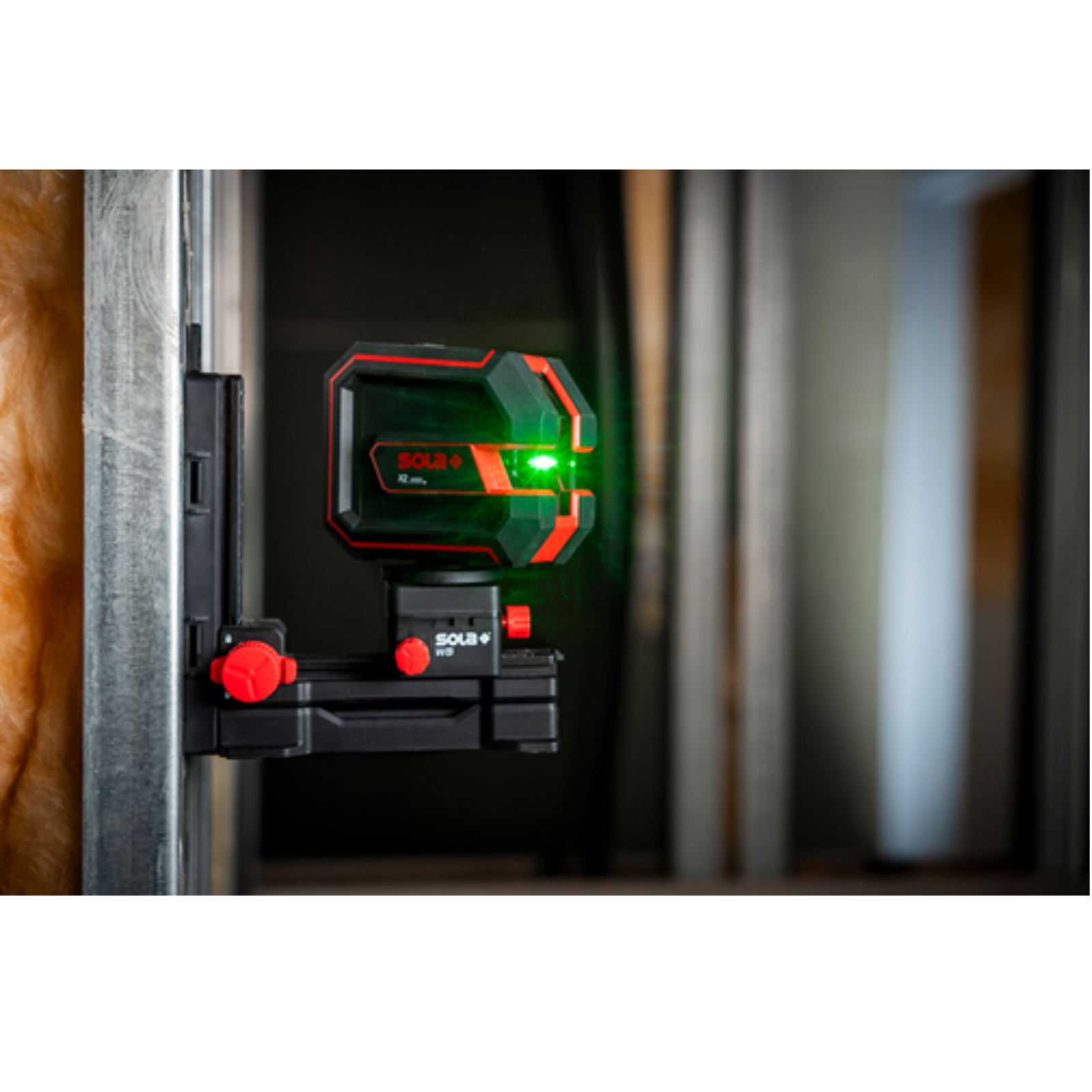 Sola Linienlaser für horizontales und vertikales Nivellieren im Innenausbau. Die hohe Präzision und der große Arbeitsbereich machen ihn zum idealen Partner beim Fliesenlegen oder der Montage von Unterkonstruktionen.