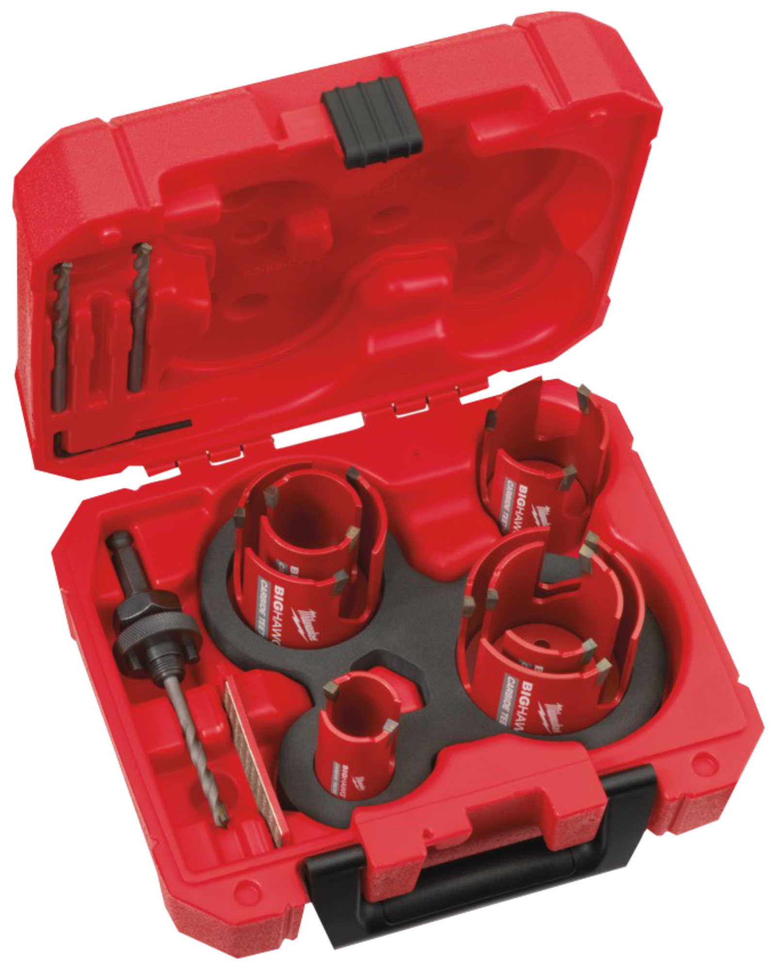 Sechskantschlüssel und Lochsägen in den Gr. 35, 44, 51, 57, 67 und 76 mm.