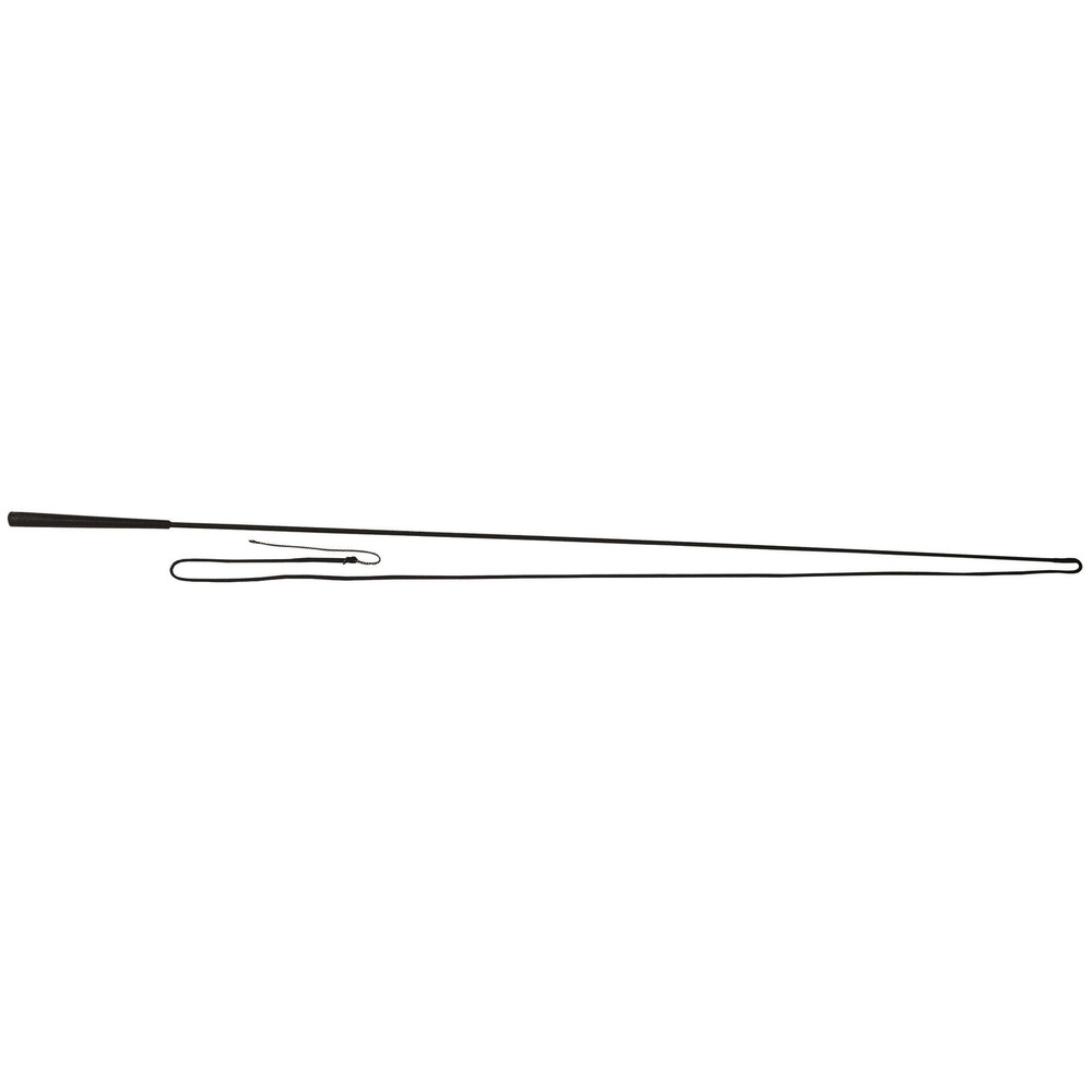 Nylonbesponnene Longierpeitsche, einteilig, mit Kunststoffgriff. Länge: 180 cm; Schlaglänge: 250 cm; Farbe: schwarz