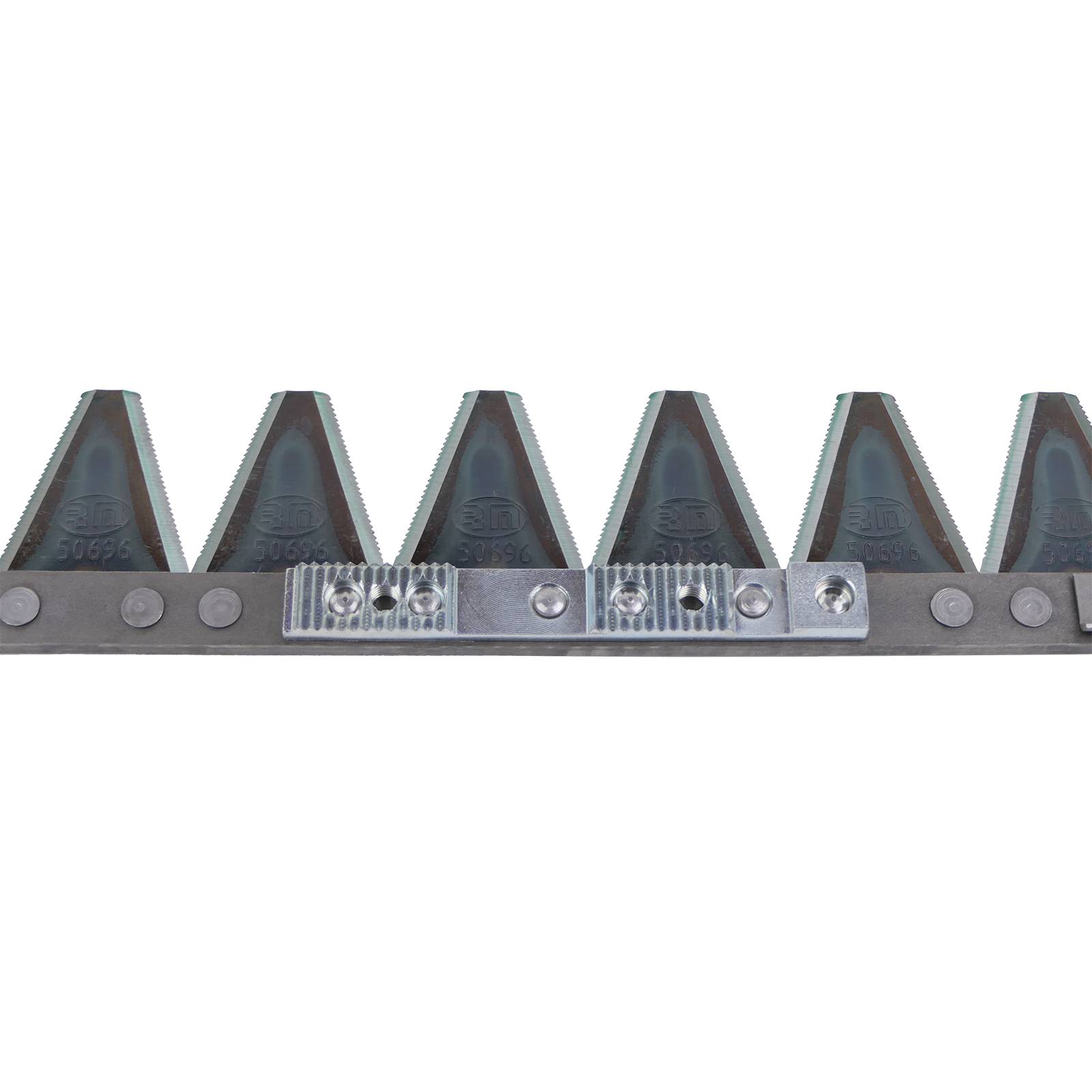 Mähmesser passend zu BCS-Mäher und zu AEBI und Reform mit BCS Mähbalken. Das Mähmesser hat 31 Klingen 563.50696 und 6 Führungsleisten 563.59061. Die Führungsleisten sind über der 2./3., 7./8., 12./13., 19./20., 24./25. und der 29./30. Klinge aufgenietet. Der Messerkopf wird auf die gezahnte Mitnehmerplatte mit 2 Schrauben M8 festgeschraubt. Der Lochabstand der Bohrungen beträgt 76 mm.